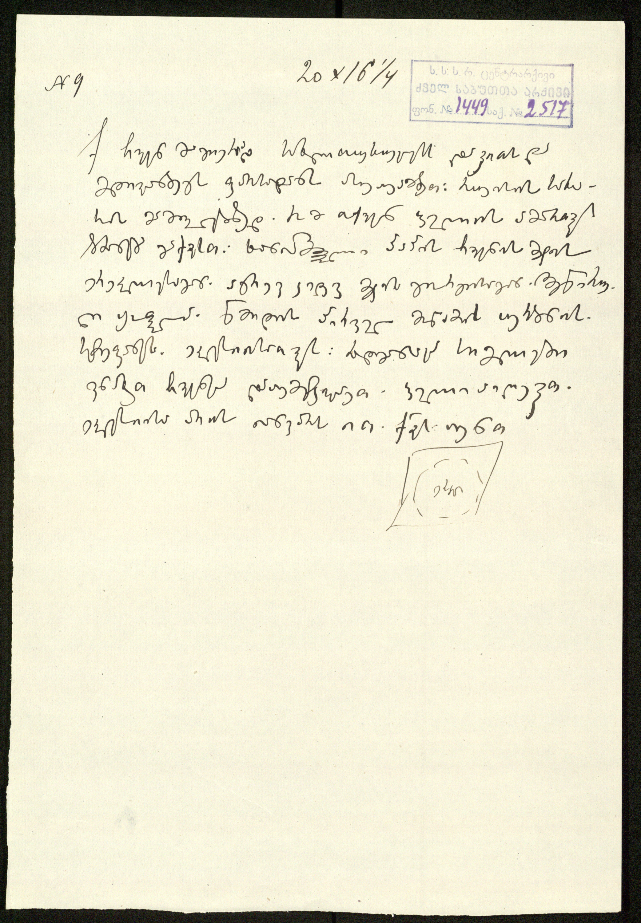 2. სარგის კაკაბაძეს მითითებული აქვს საბუთის დედნის ზომა: 20X161/4 და ძველი საარქივო ნომერი N9.