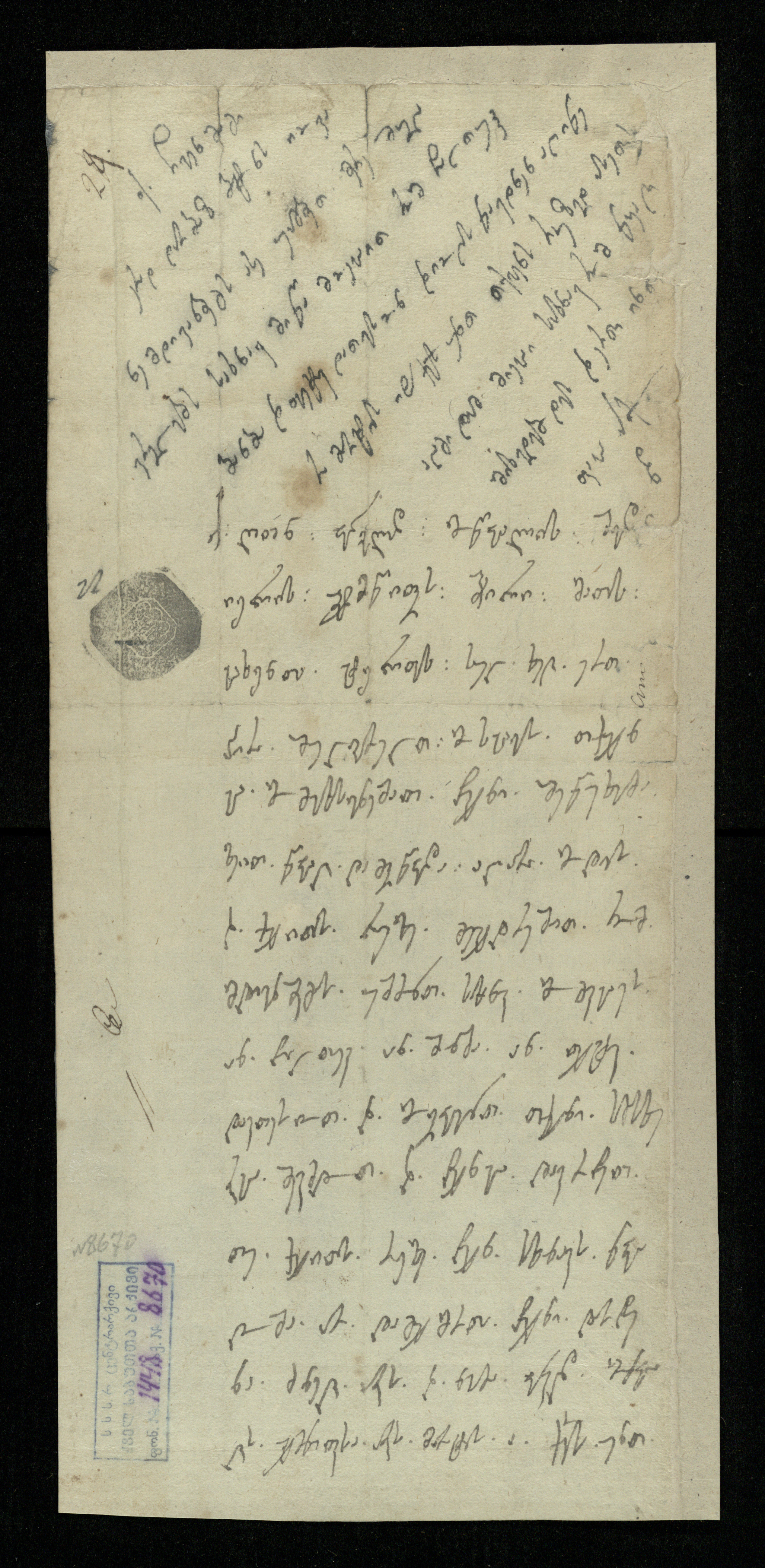 ქაღალდი ღია ყავისფერი, დაწერილი ყავისფერი და შავი მელნით