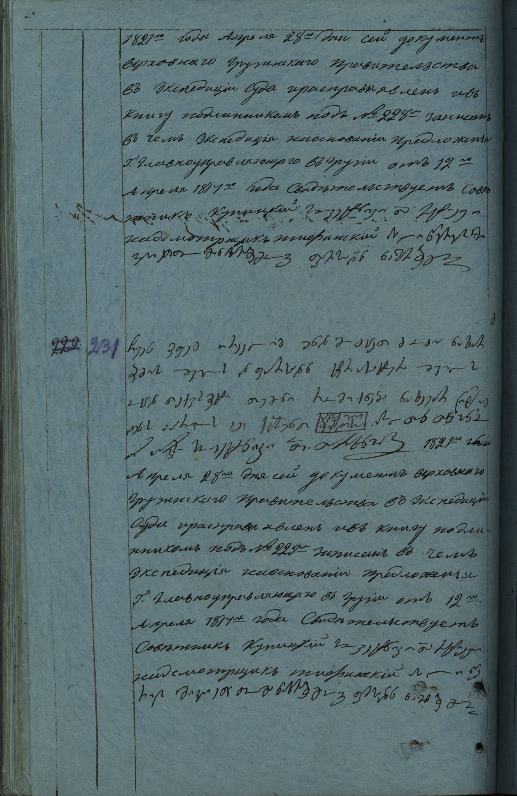 ქაღალდი ცისფერი, დაწერილი შავი მელნით