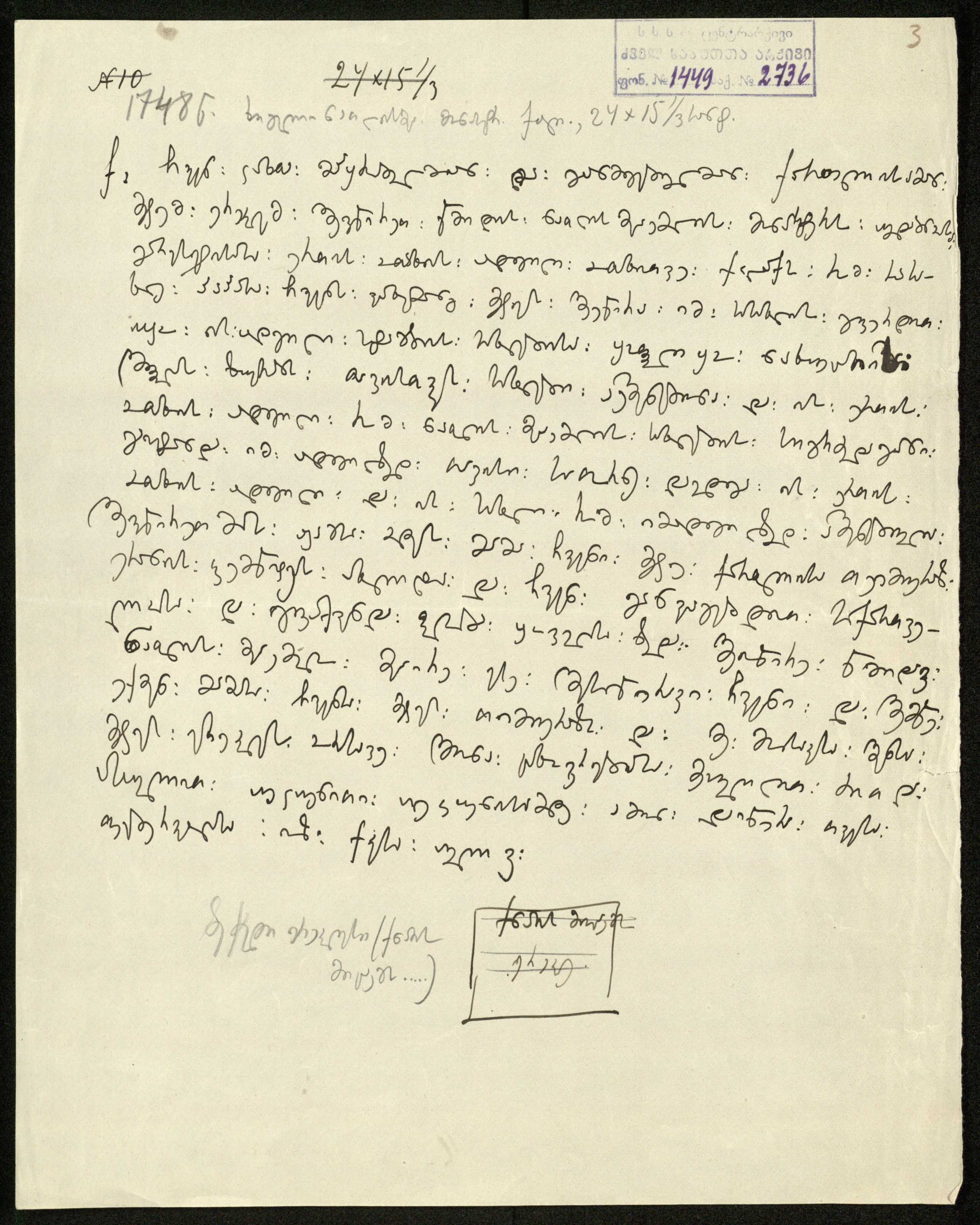 2. სარგის კაკაბაძეს მითითებული აქვს საბუთის დედნის ზომა: ,,24x151/3“ და ძველი სააღრიცხვო-საარქივო ნომერი: N10