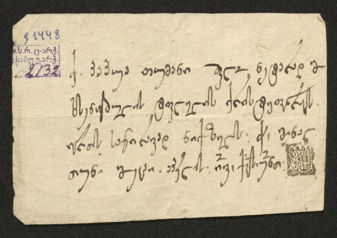 გვიანდელი მინაწერი: ,,ქ. ამ ყაბზისა მიცემულია“.