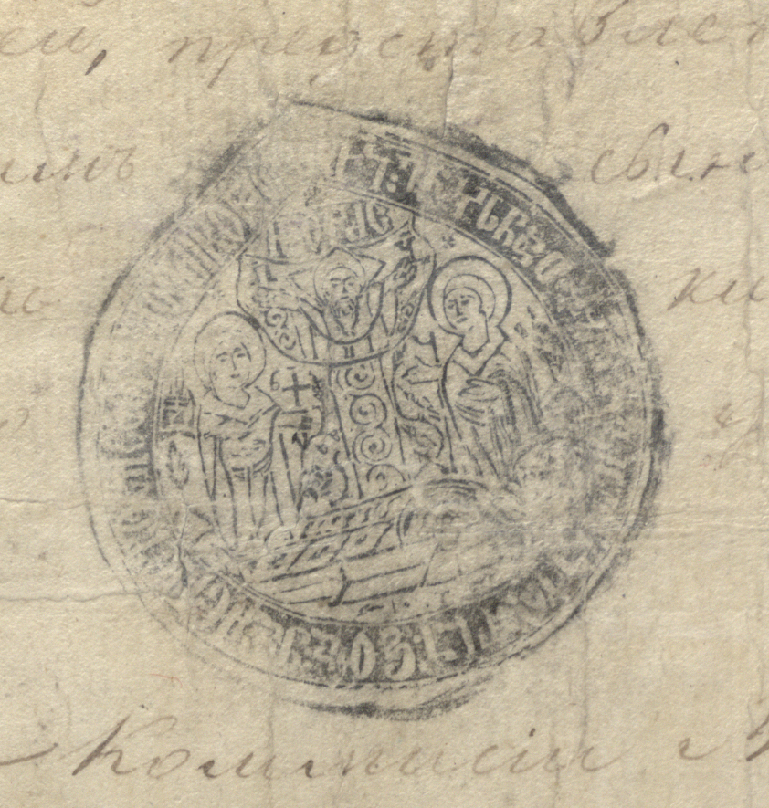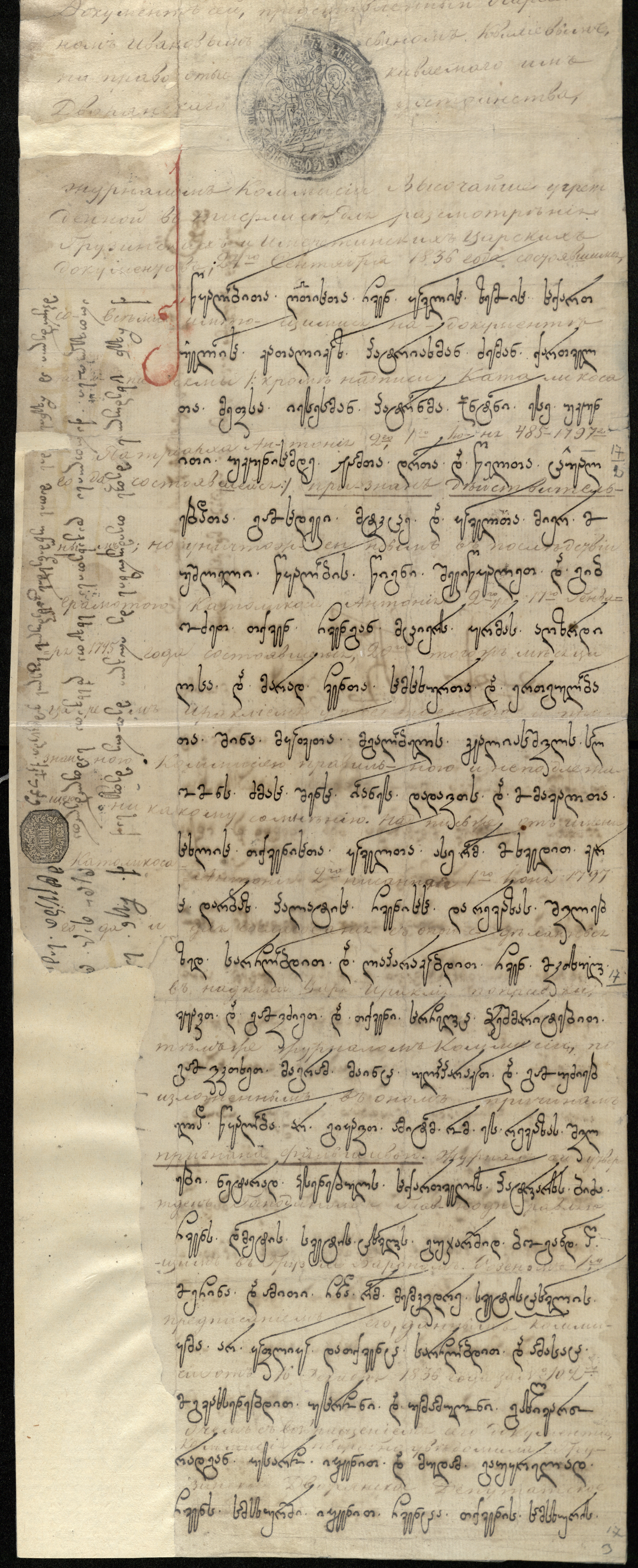 საბუთს ახლავს საშუალო ზომის ქანწილი შესრულებული წითელი მელნით.