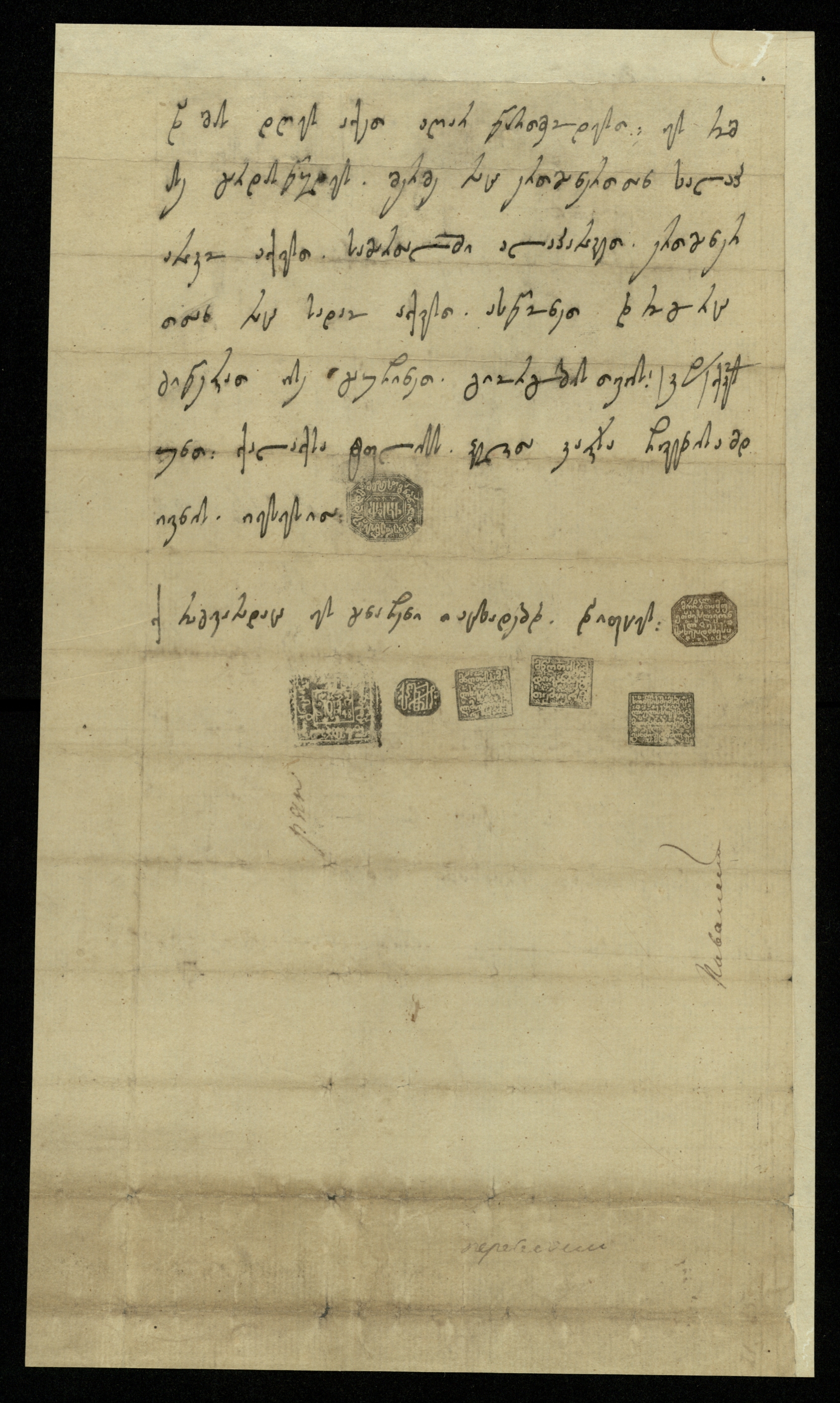 1. მინაწერი დამწერის ხელით: ,,ქ. რაგვარადაც ეს განაჩენით აცხადებდა, დაიფიცეს“.