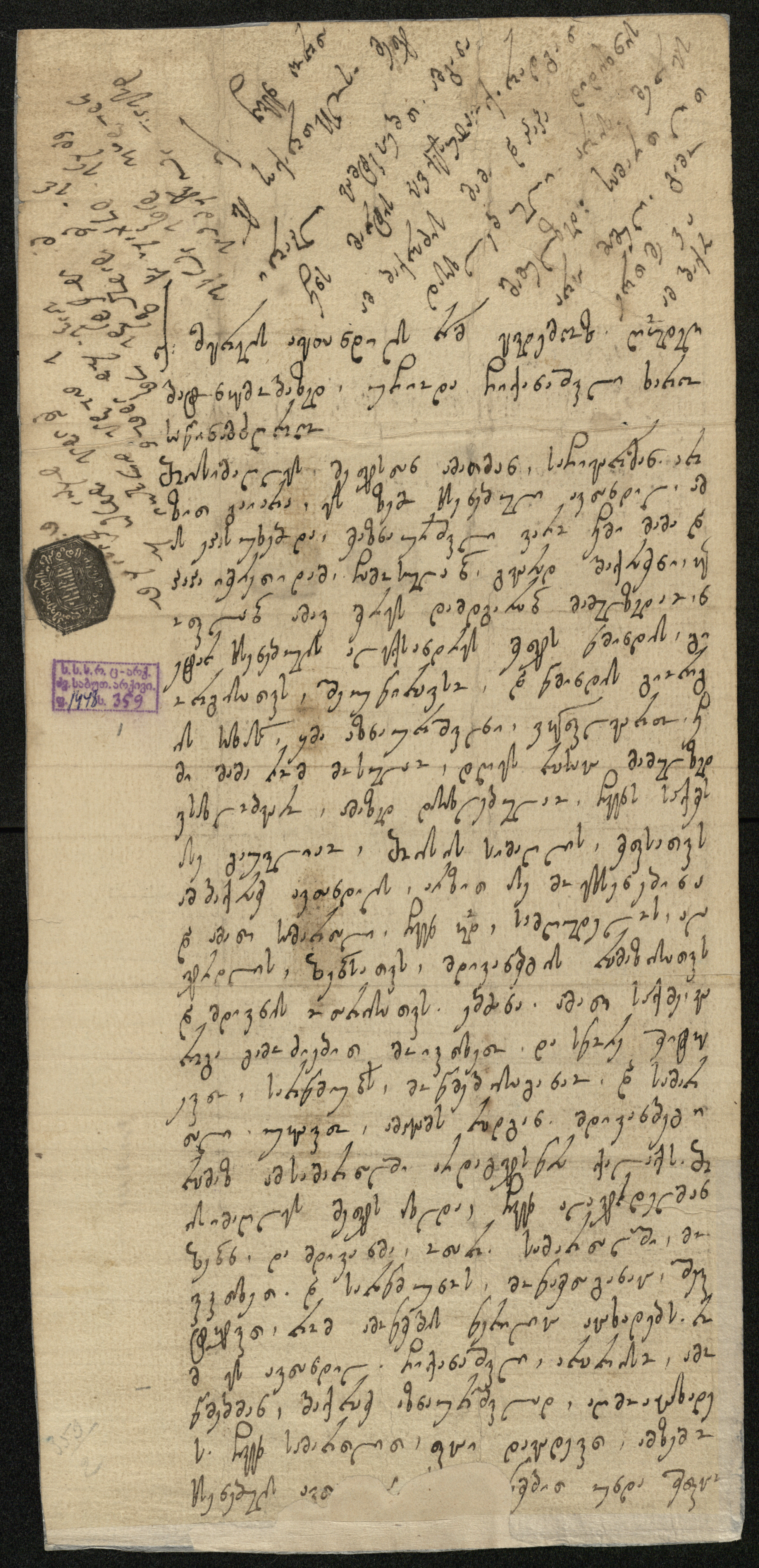 ქაღალდი მოყვითალო, დაწერილი შავი მელნით.