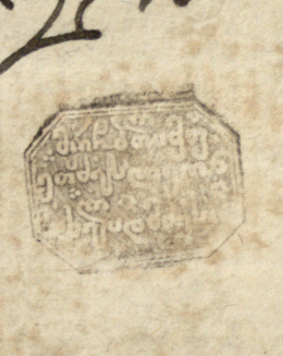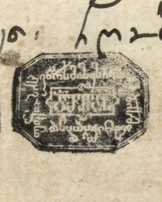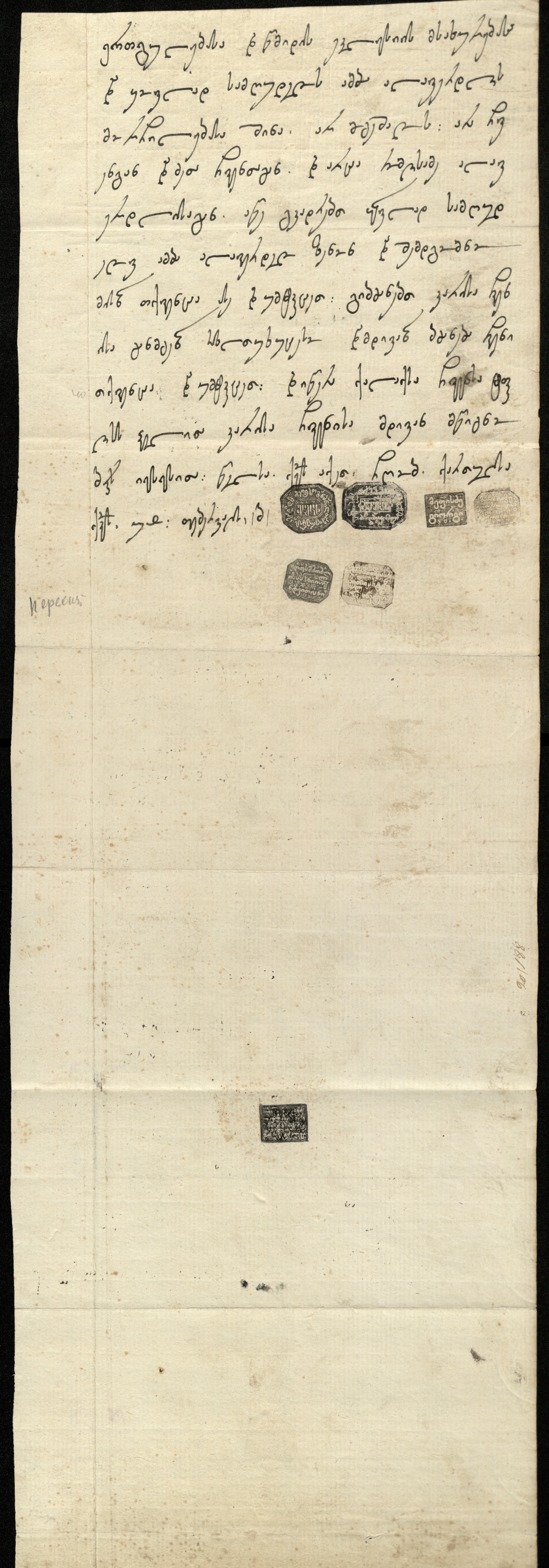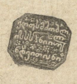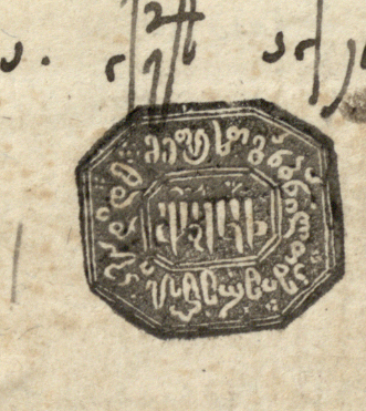 1. ახლავს საშუალო ზომის ქანწილი ფოთლოვანი ორნამენტით, შესრულებული შავი მელნით.