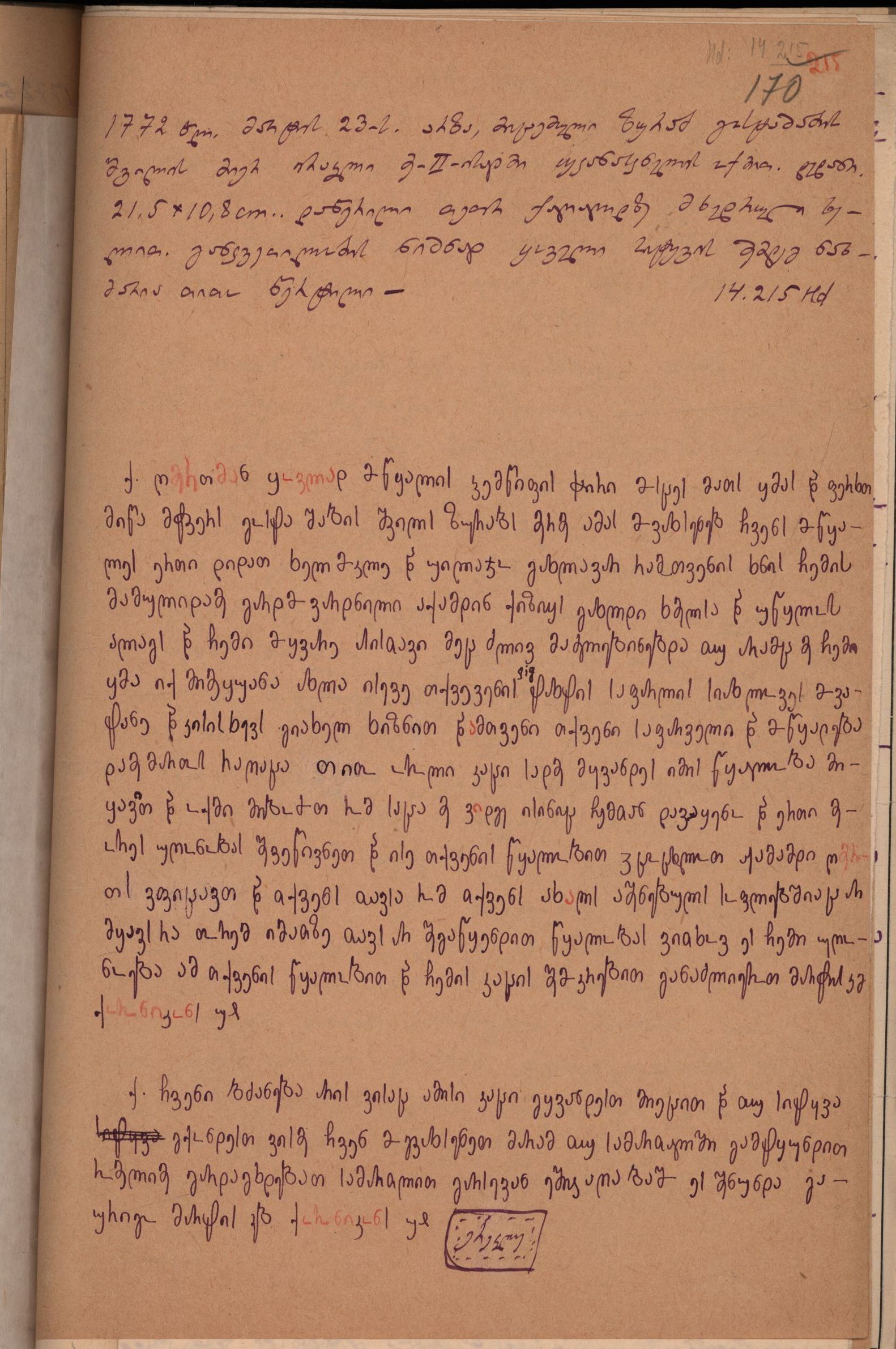 1. საბუთი გადაწერილია გიორგი ბოჭორიძის მიერ 1930-1936 წწ.-ში.