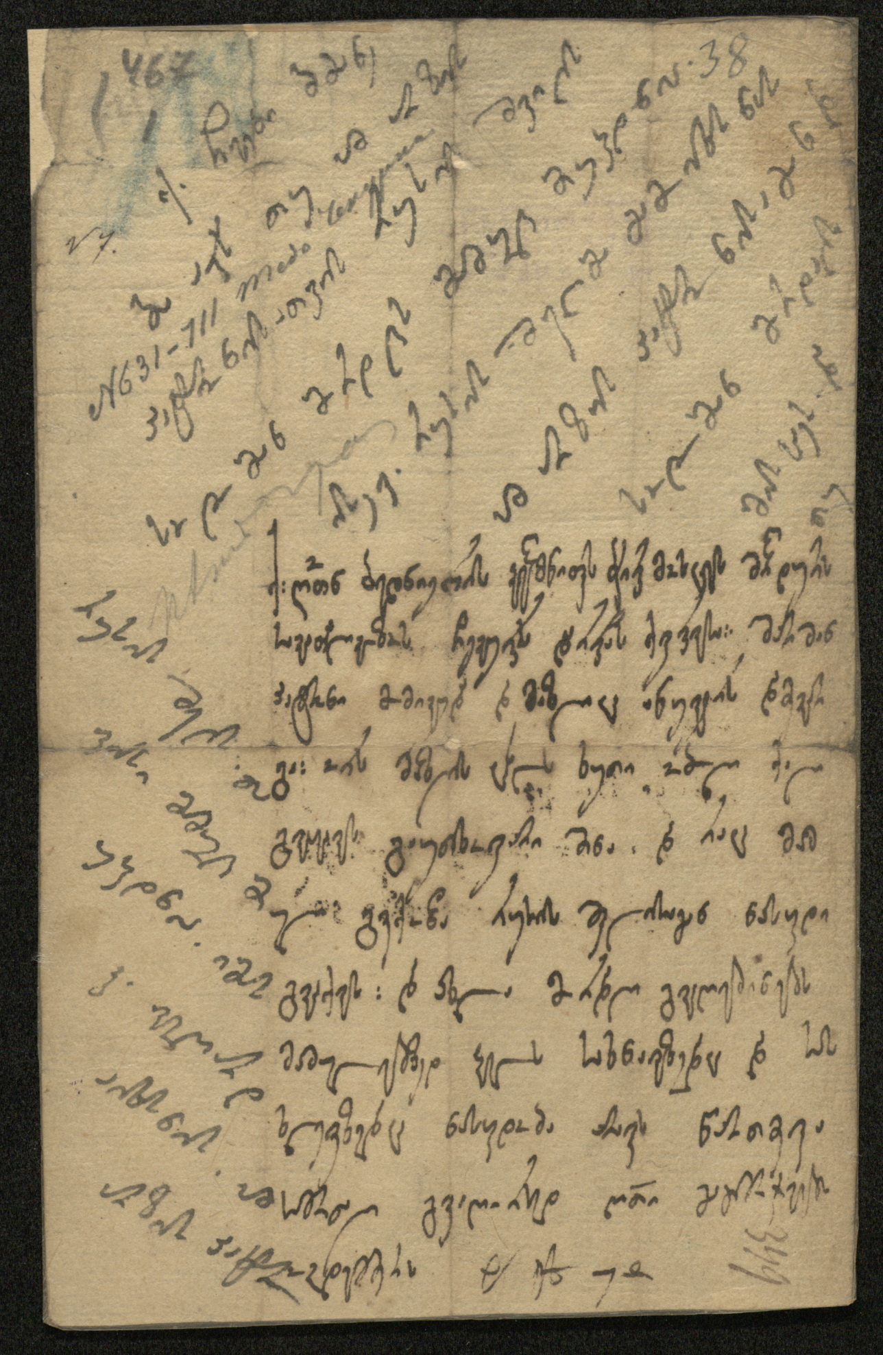 ქაღალდი ღია ყავისფერი, დაწერილი შავი და ყავისფერი მელნით.