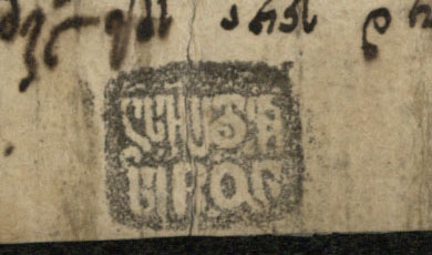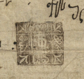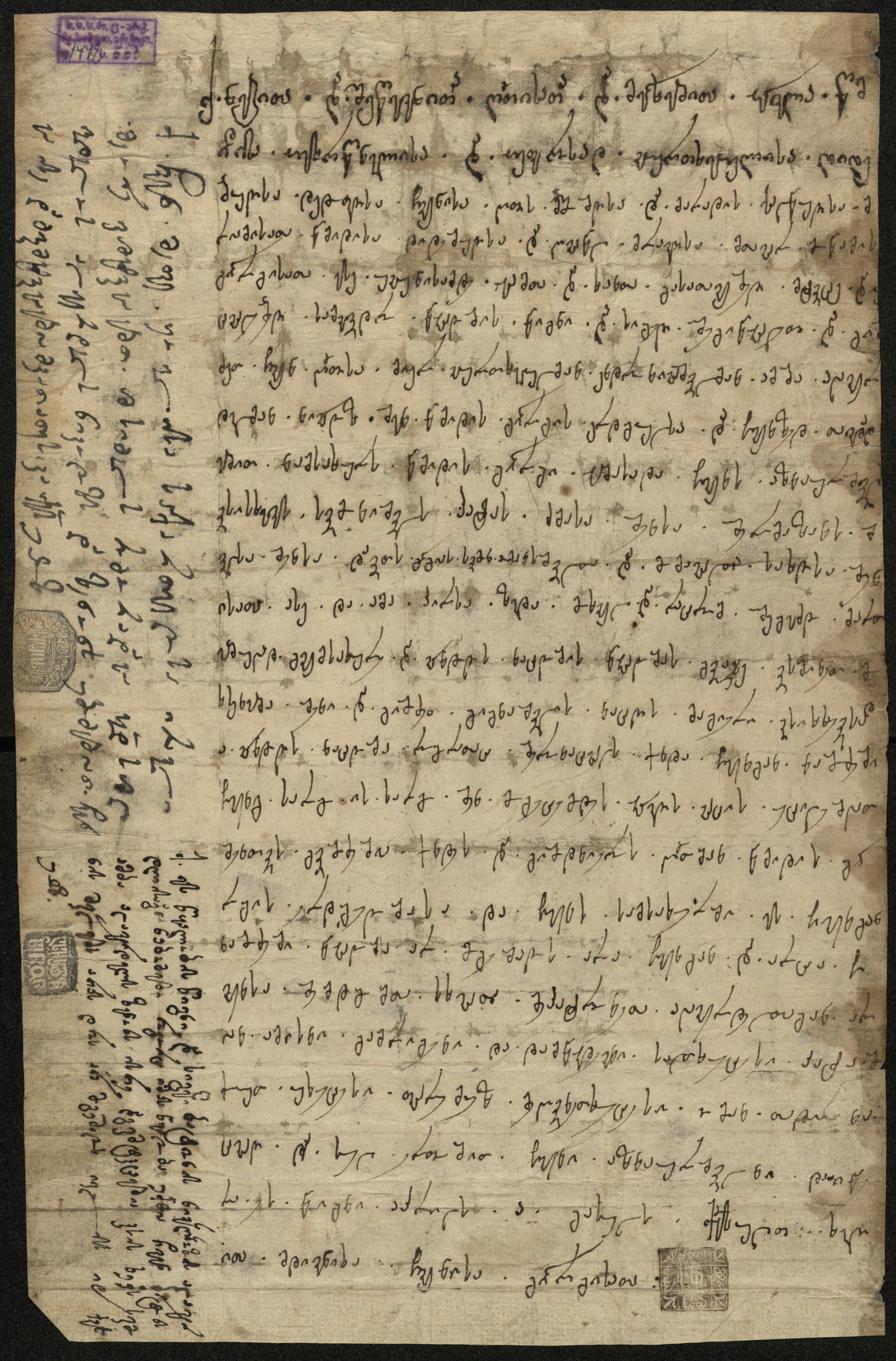 ქაღალდი ნაცრისფერი ყავისფერი ლაქებით, დაწერილი შავი მელნით