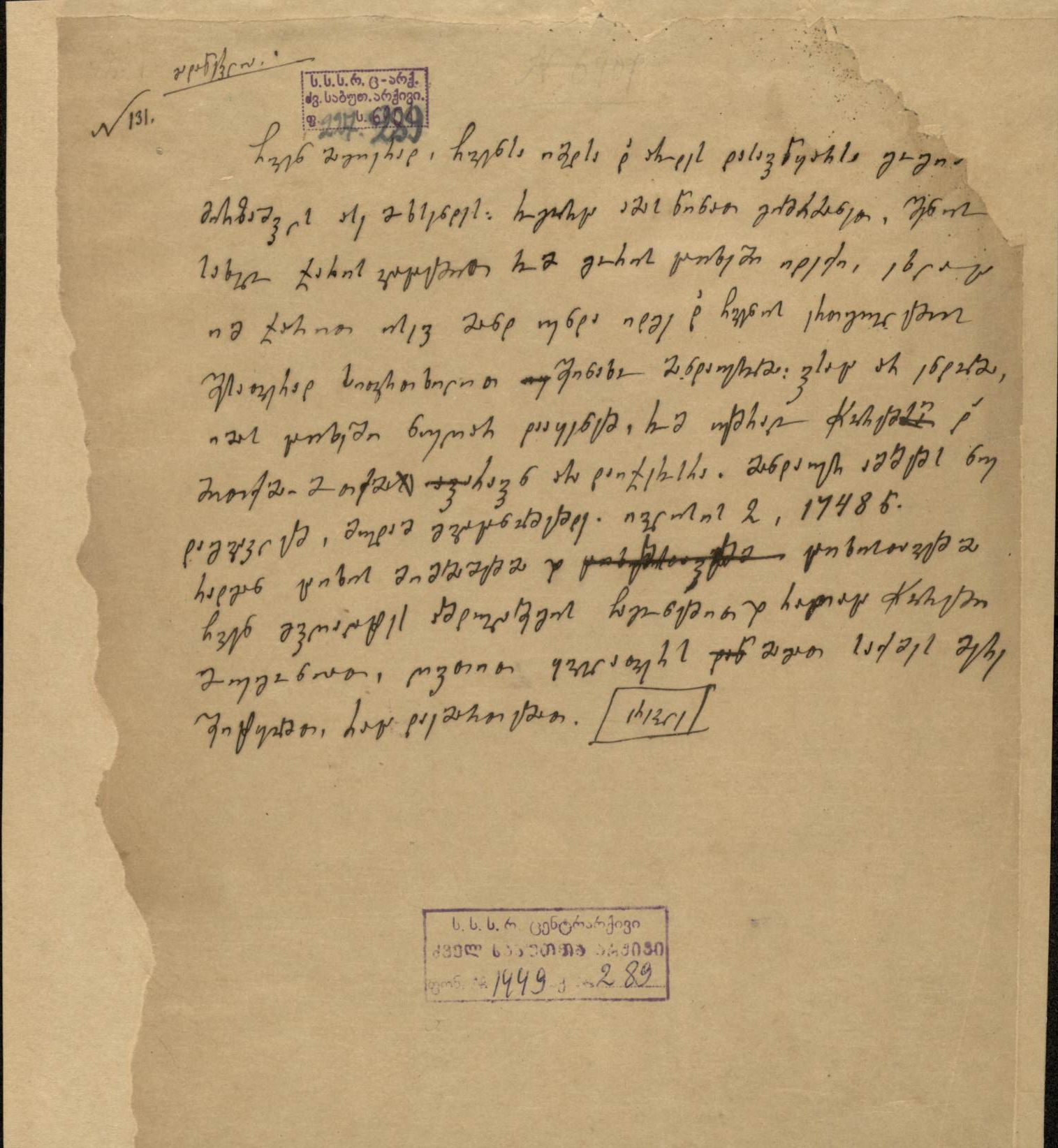 ქაღალდი ყავისფერი, დაწერილი შავი მელნით
