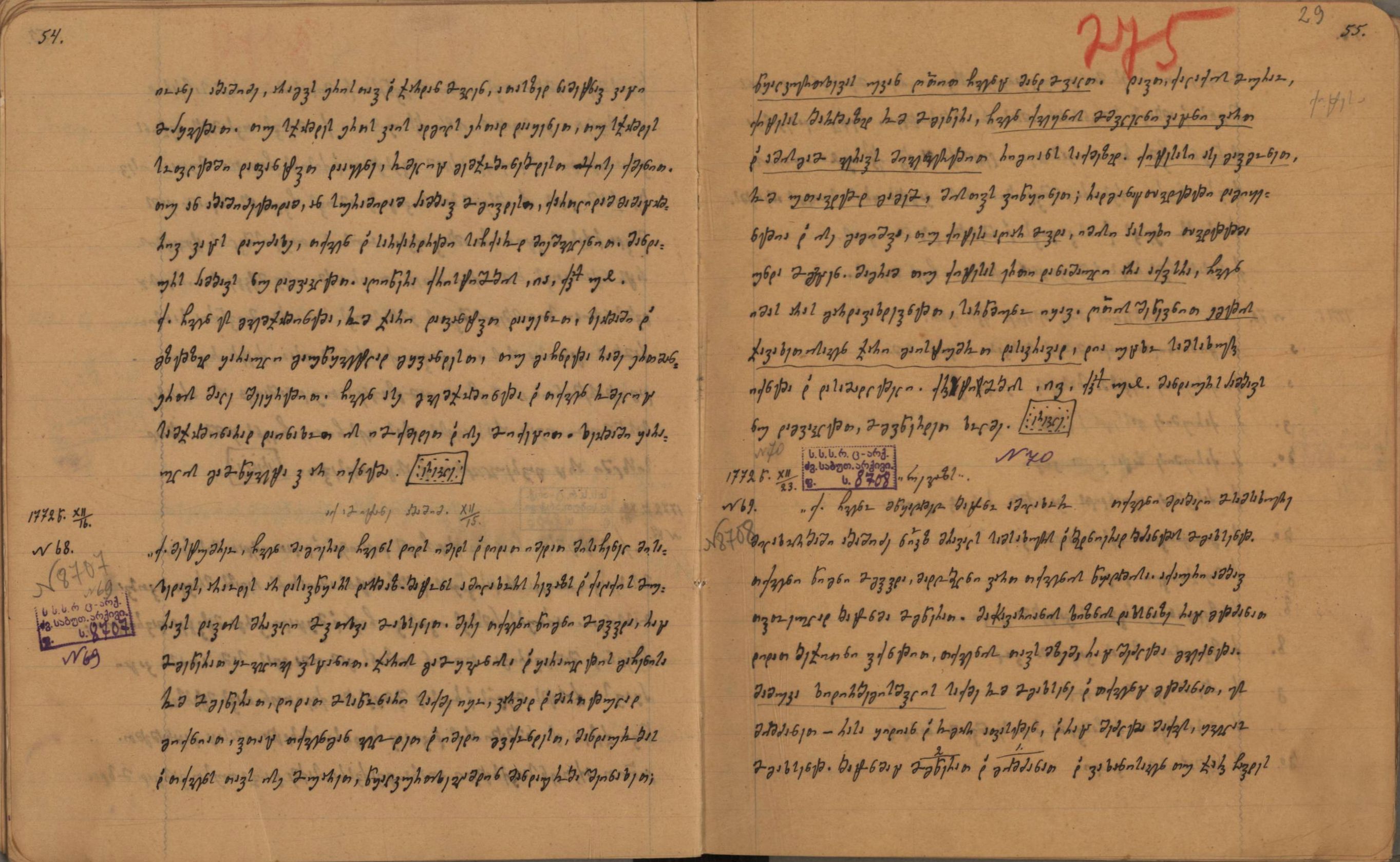 ქაღალდი ღი ყავისფერი, დაწერილი შავი მელნით,