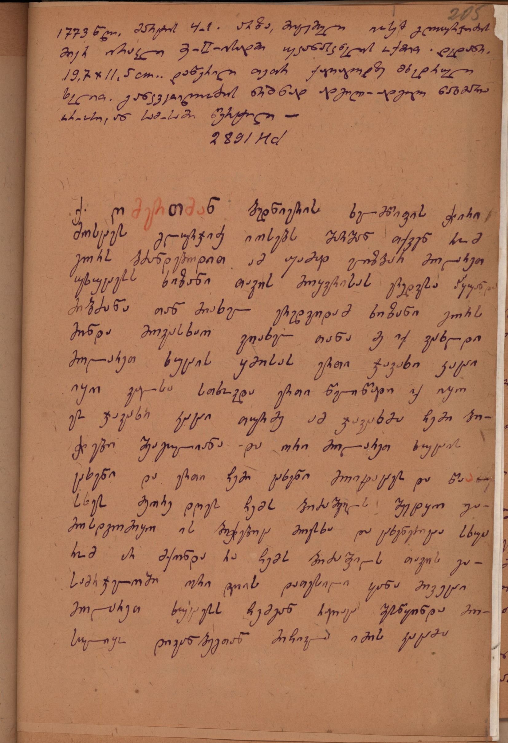 2. დედნის აღწერა გიორგი ბოჭორიძის მიერ: ,,დედანი, 19,7x11,5 cm..დაწერილი თეთრ ქაღალდზე მხედრული ხელით. განკვეთილობის ნიშნად ადგილ-ადგილ ნახმარია ორ-ორი, ან სამ-სამი წერტილი", დედანი, ხეც, Hd 2099.