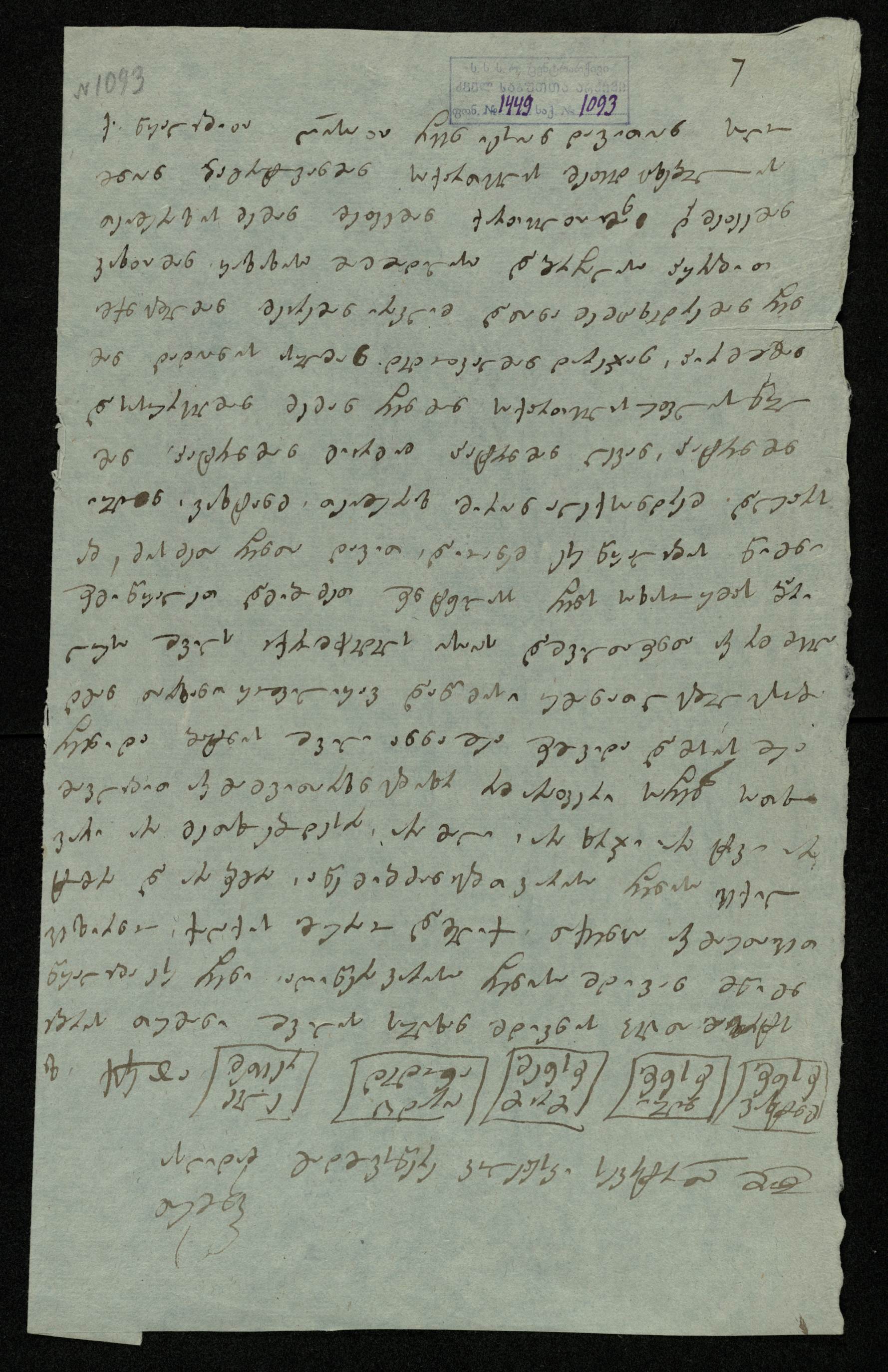 ქაღალდი მწვანე, დაწერილი ყავისფერი მელნით.