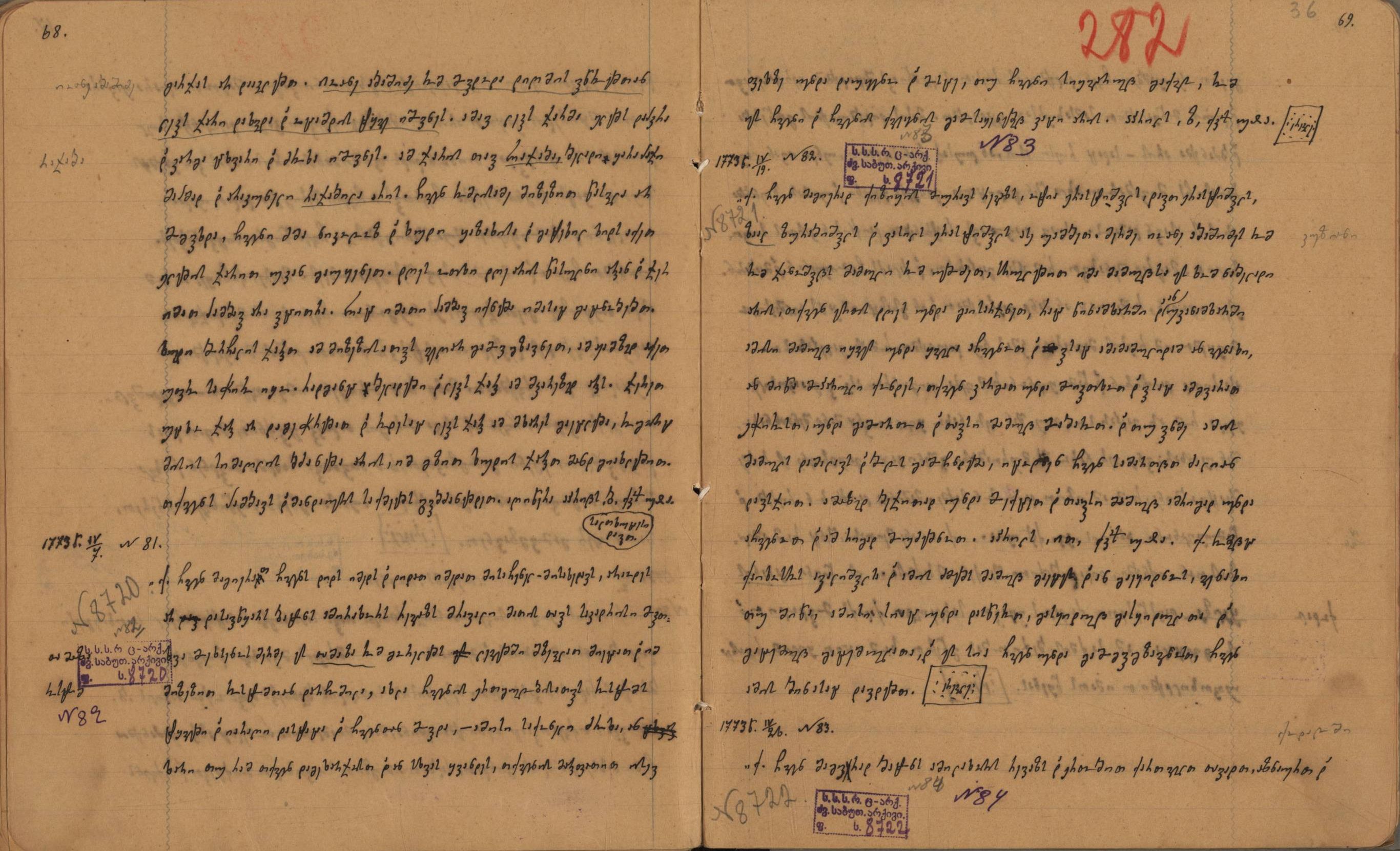 ქაღალდი ყავისფერი, დაწერილი შავი მელნით.