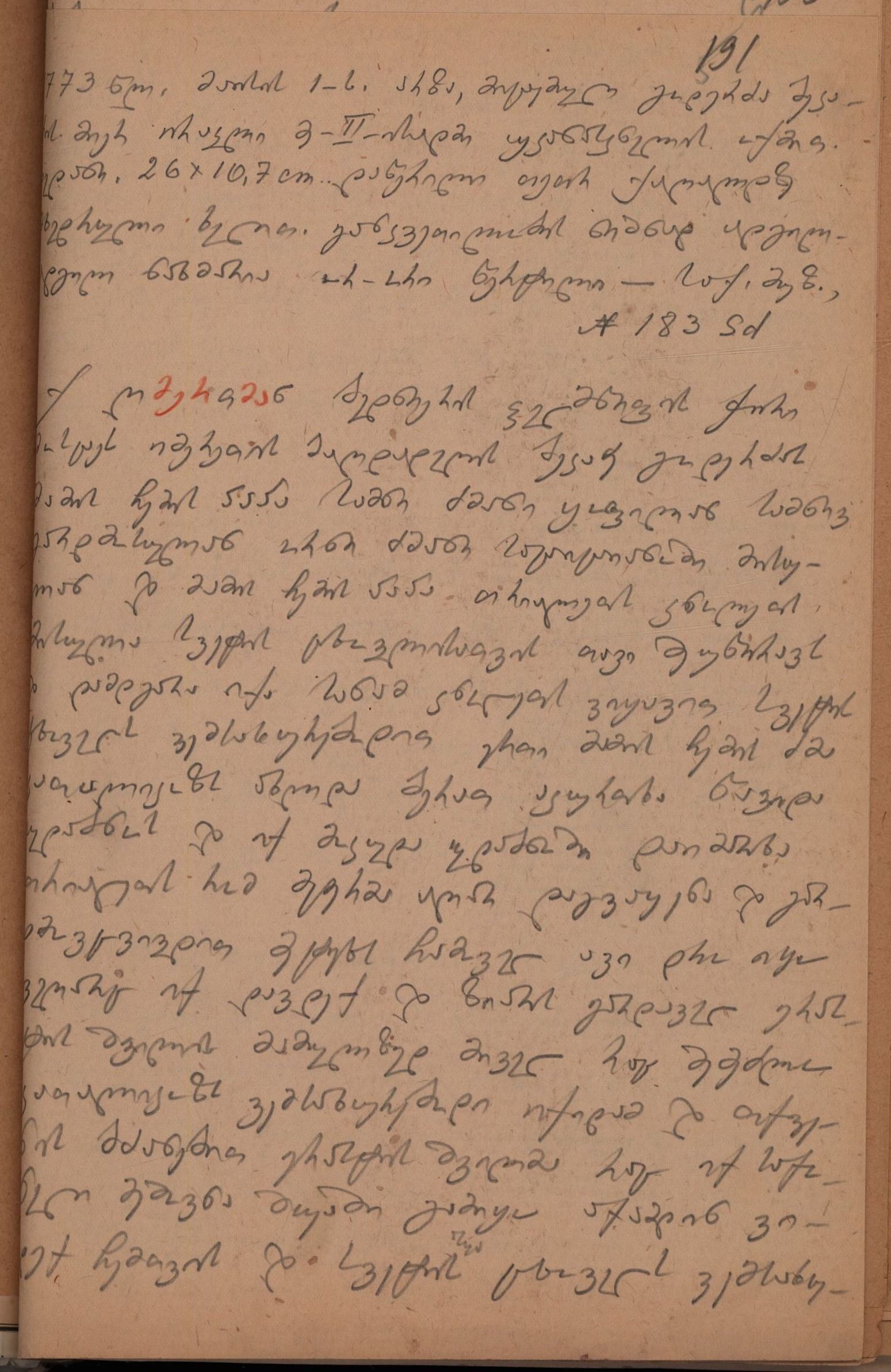 2. დედნის აღწერა გიორგი ბოჭორიძის მიერ: დედანი, 26x10,7 cm.. დაწერილი თეთრ ქაღალდზე მხედრული ხელით; განკვეთილობის ნიშნად ადგილ-ადგილ ნახმარია ორ-ორი წერტილი", დედანი, ხეც, Sd 183.