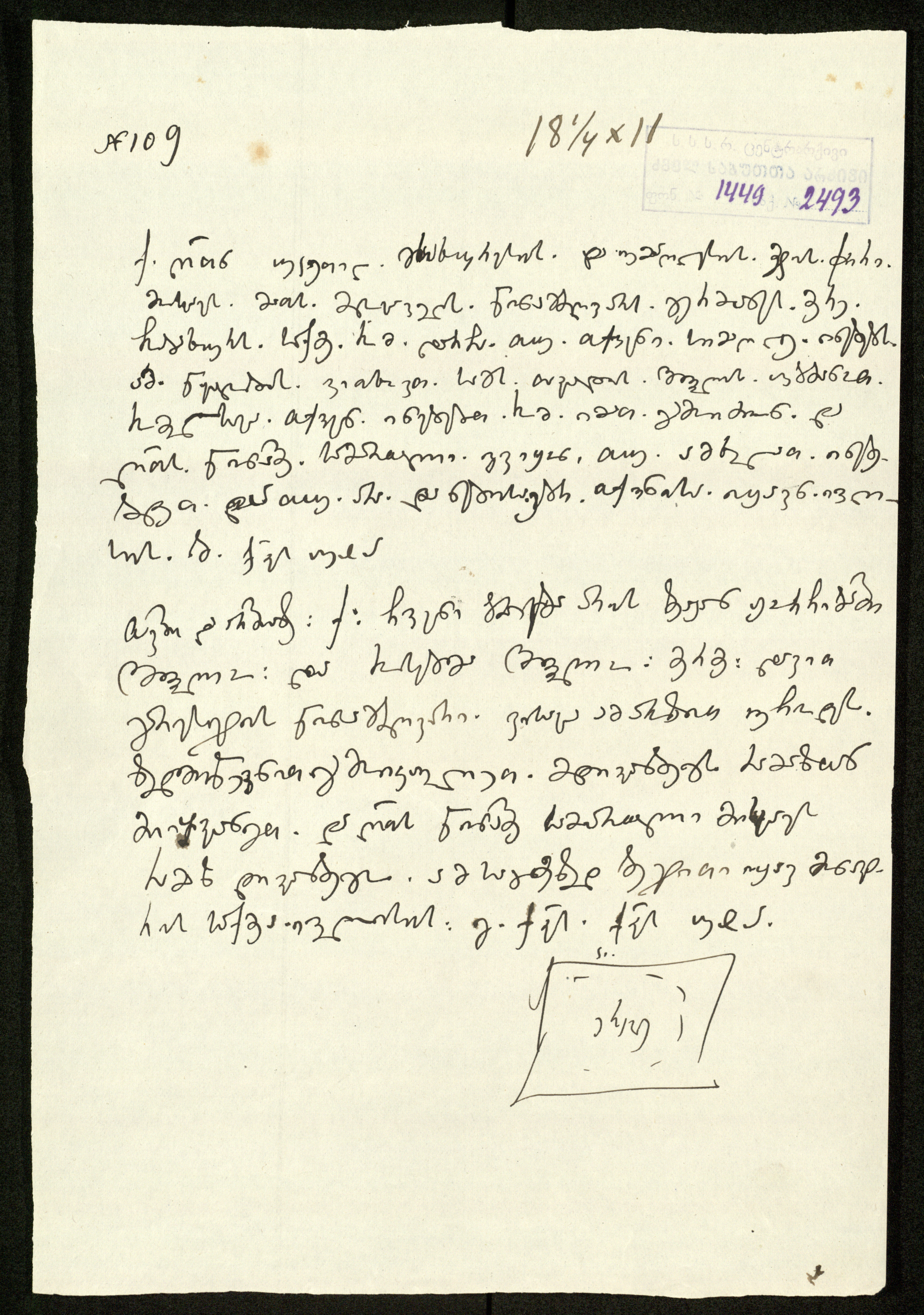 2. სარგის კაკაბაძეს მითითებული აქვს საბუთის დედნის ზომა: 181/4X11 და ძველი საარქივო-სააღრიცხვო ნომერი: N109.