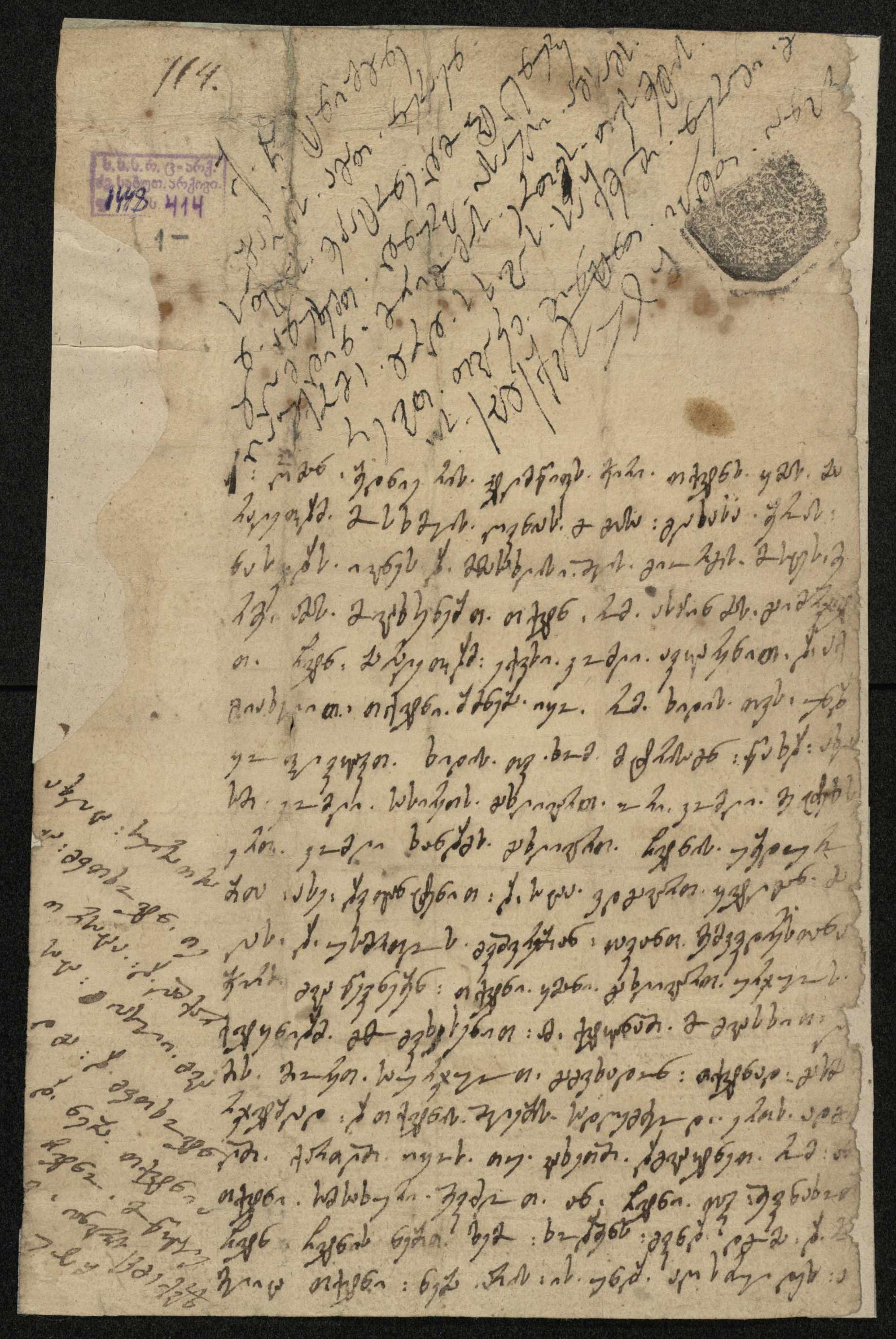 ქაღალდი ყვითელი, დაწერილი ყავისფერი და შავი მელნით