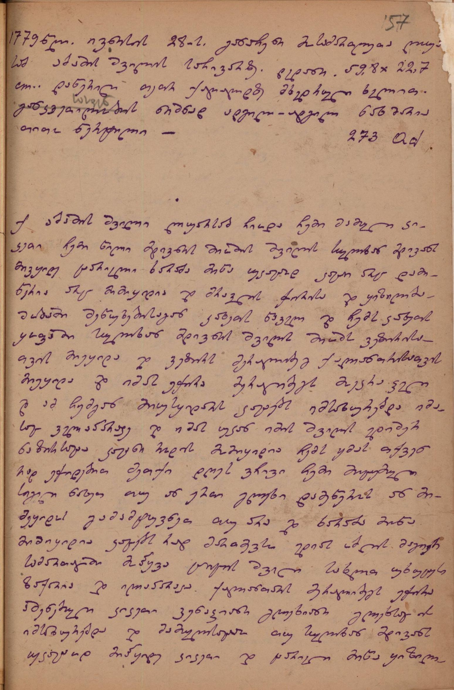 2. დედნის აღწერა გიორგი ბოჭორიძის მიერ: ,,დედანი, ზომა 59,8X22,7, დაწერილი თეთრ ქაღალდზე მხედრული ხელით. განკვეთილობის ნიშნად ადგილ-ადგილ ნახმარია თითო წერტილი". დედანი, ხეც, Qd 273.