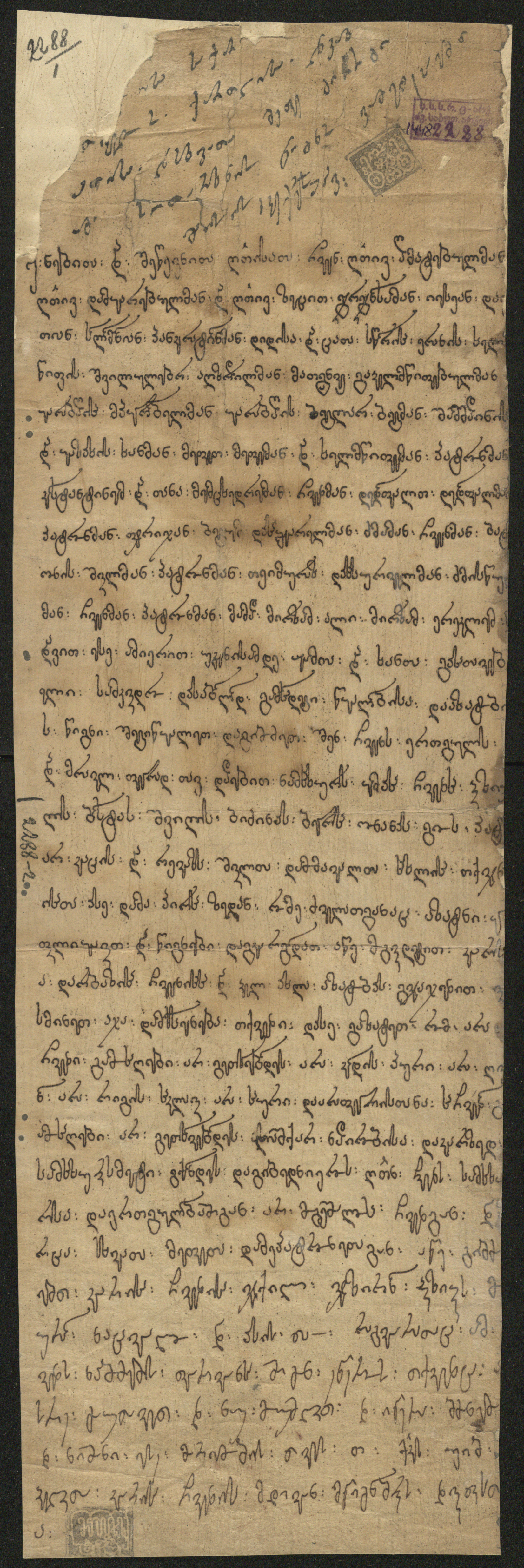 ქაღალდი ღია ყავისფერი, დაწერილი შავი მელნით
