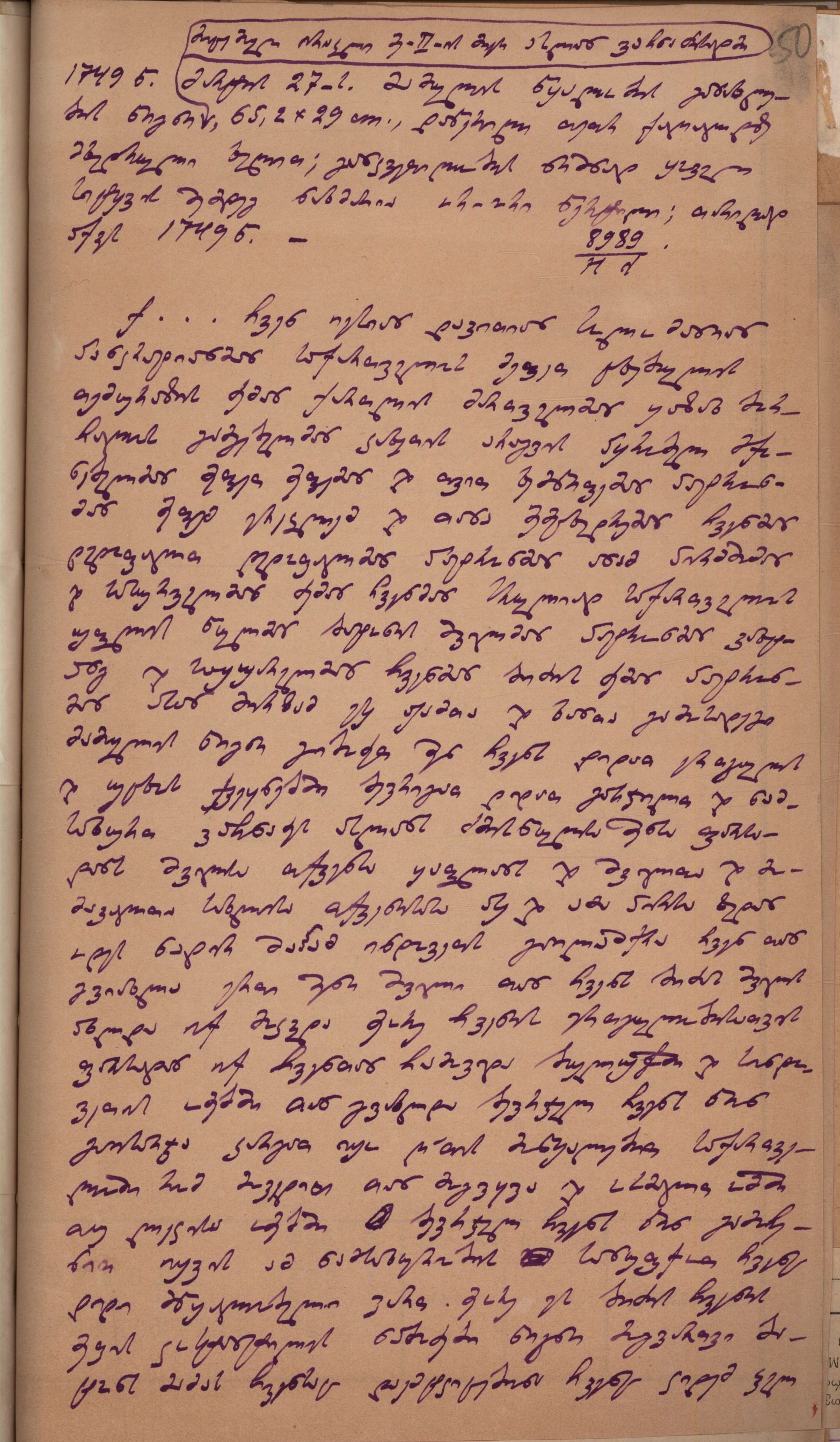 ქაღალდი ყავისფერი, დაწერილი ლურჯი მელნით
