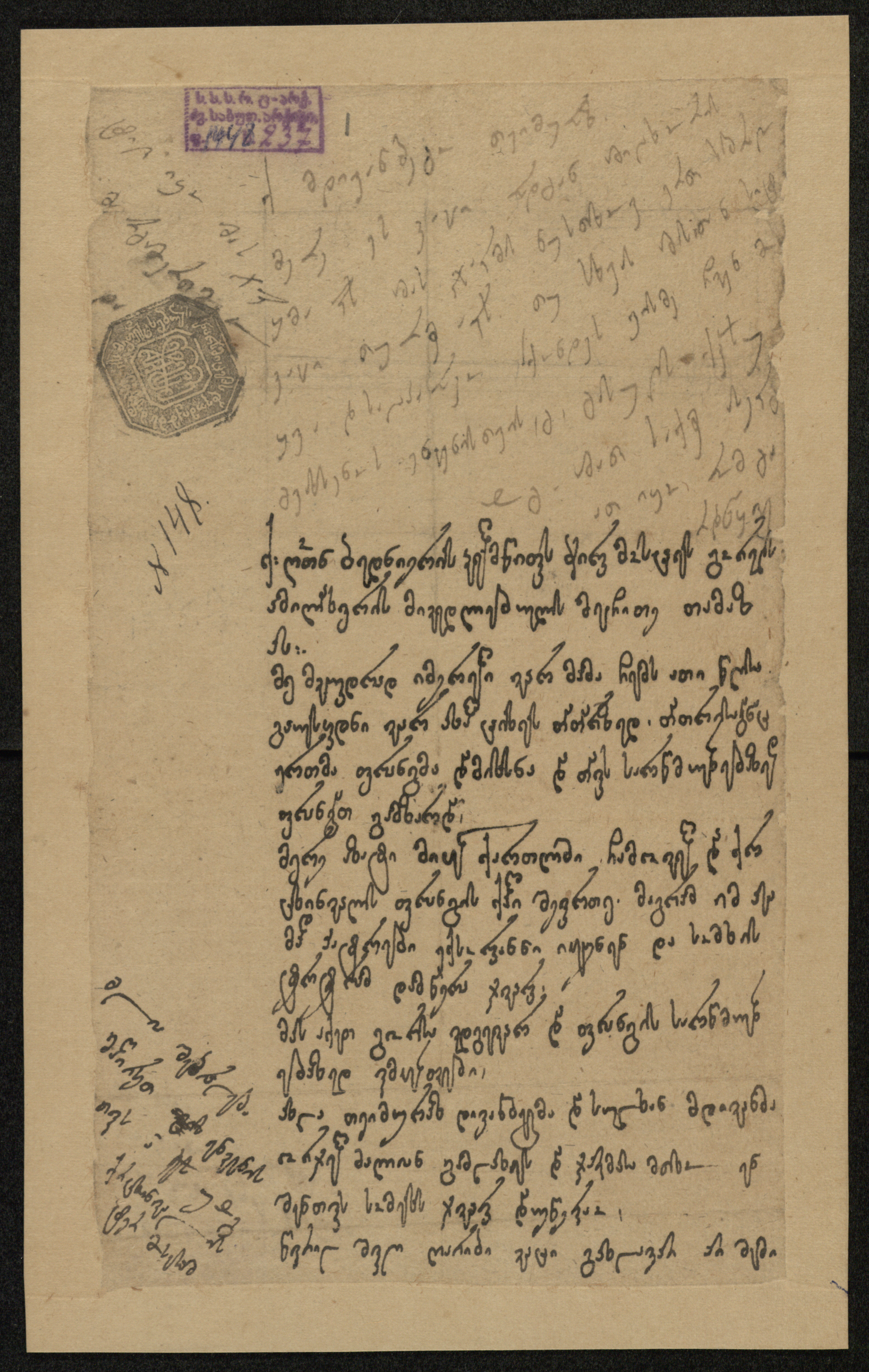 ქაღალდი ყავისფერი, დაწერილი შავი და ყავისფერი მელნით