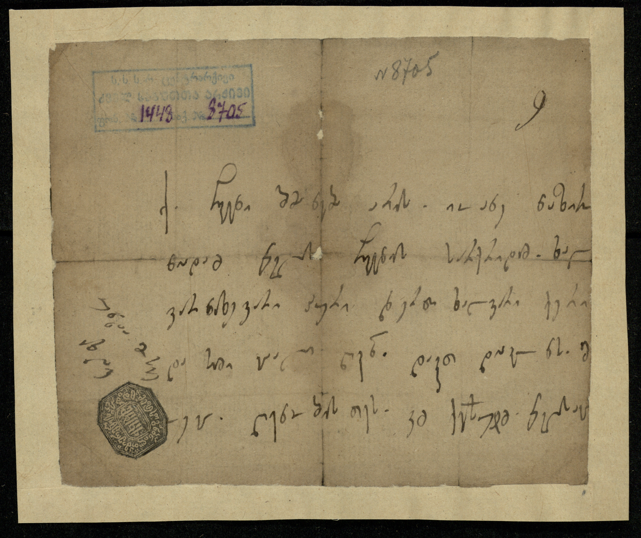 ქაღალდი ყავისფერი, დაწერილი შავი მელნით.