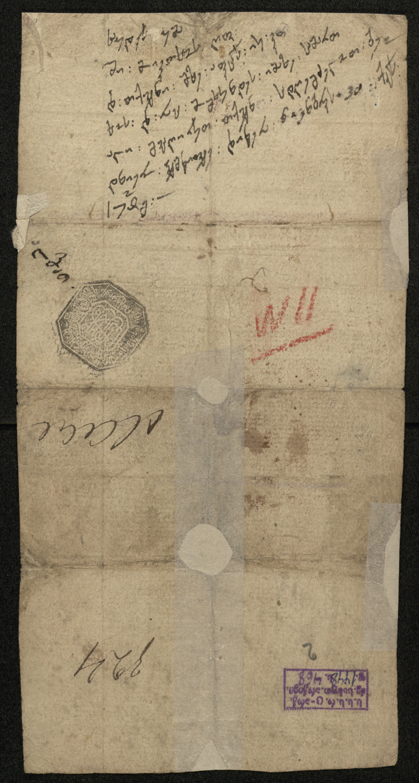 ქაღალდი ყავისფერი შესრულებული შავი მელნით.