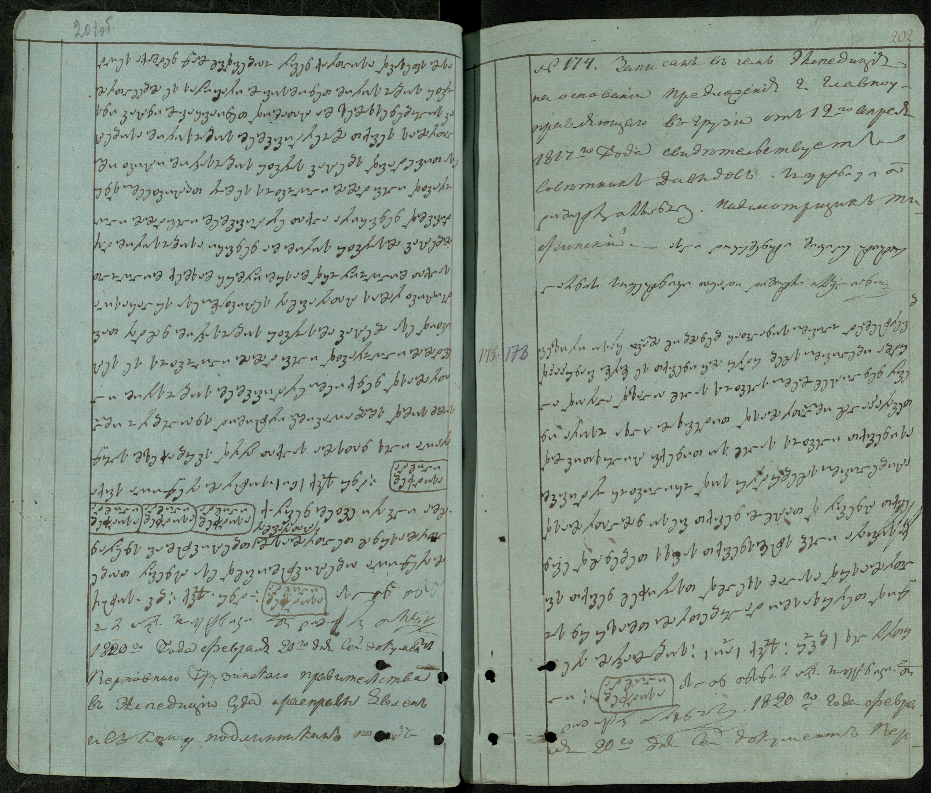 ქაღალდი ცისფერი, დაწერილი შავი მელნით.