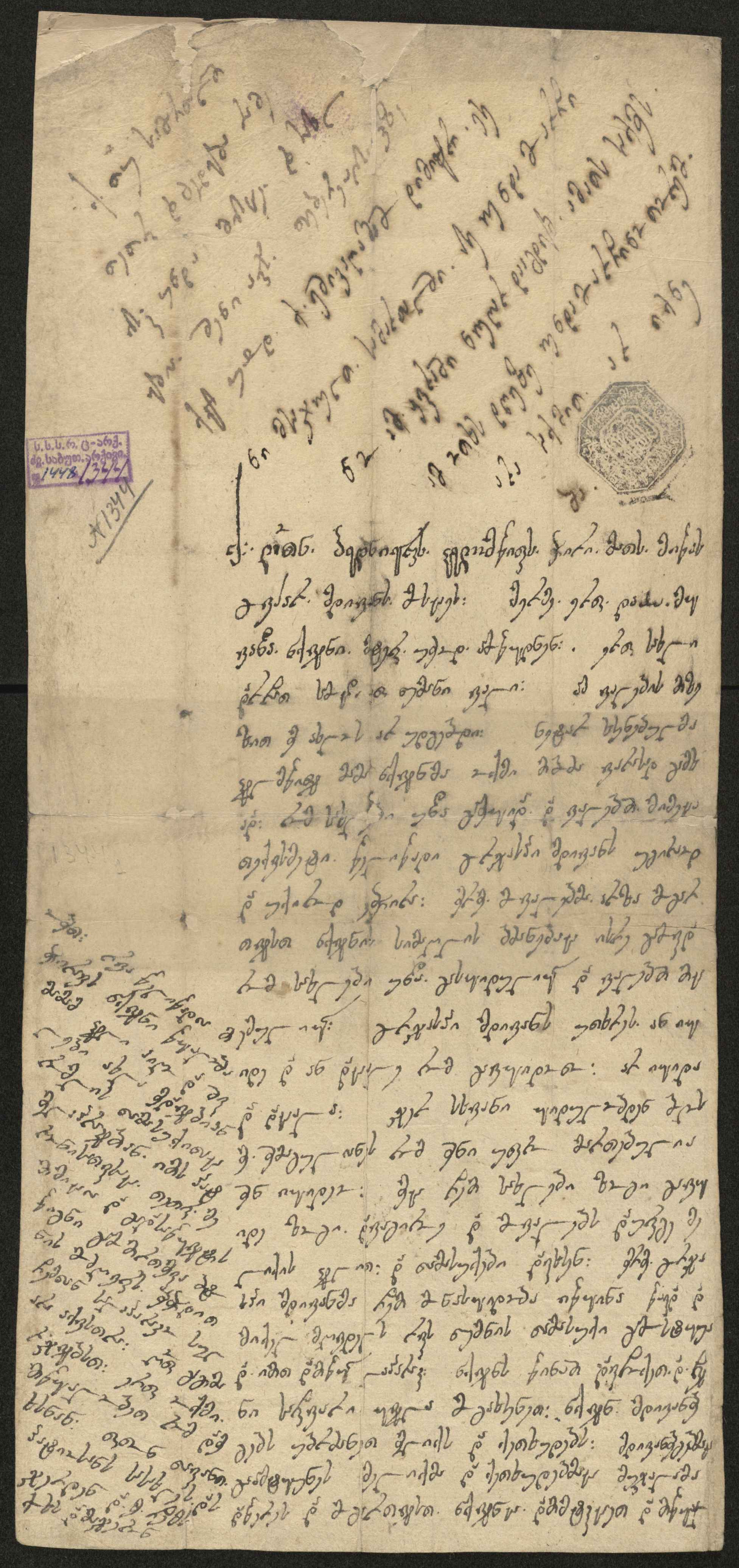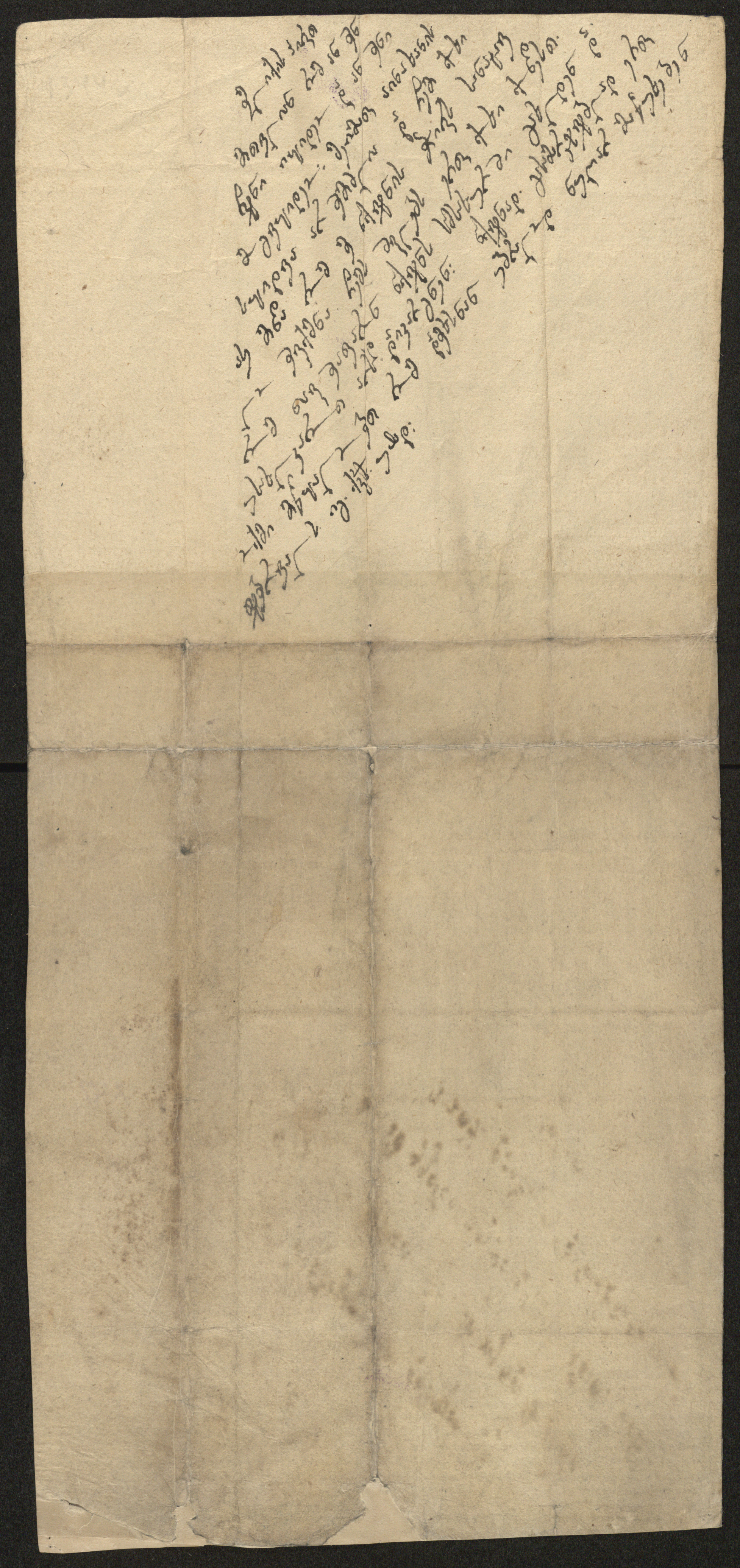 ქაღალდი მოყვითალო, დაწერილი ყავისფერი და შავი მელნით