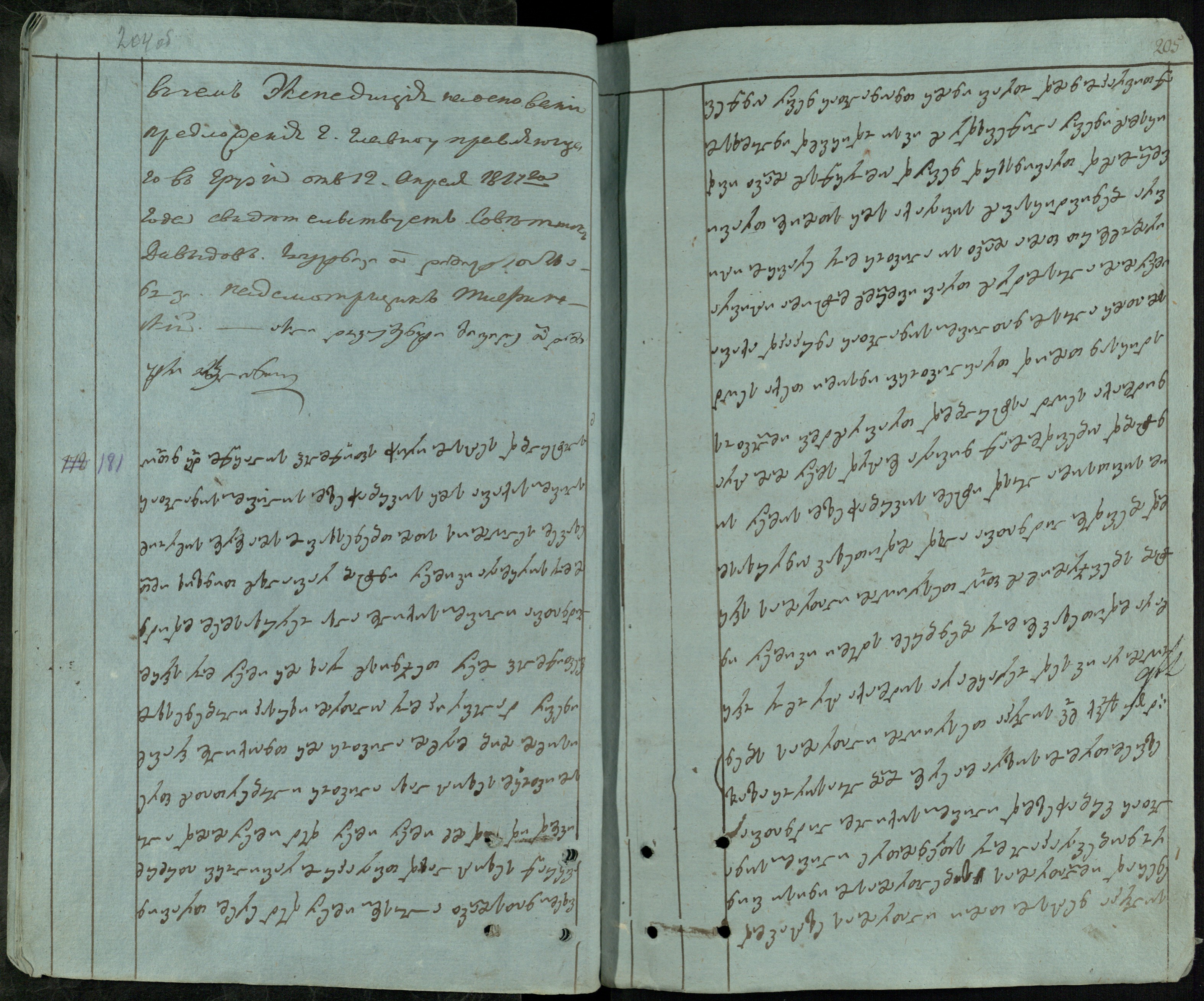 ქაღალდი ცისფერი, დაწერილი შავი მელნით