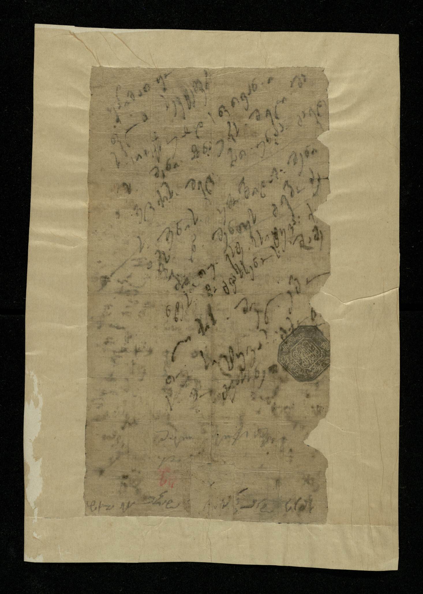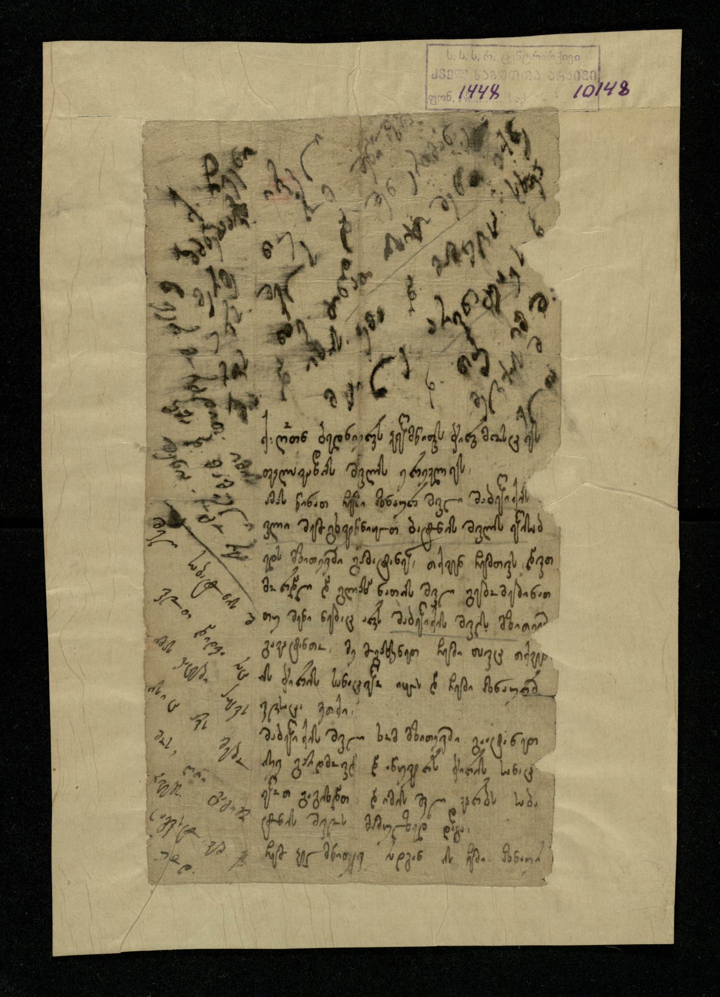ქაღალდი ყავისფერი, დაწერილი შავი მელნით.