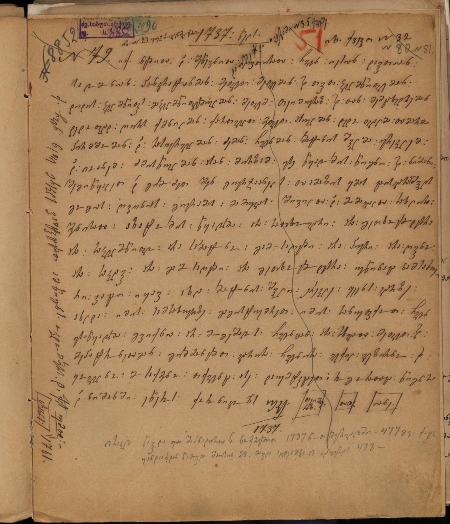 1. მინაწერი ფანქრით გადამწერის ხელით: ირაკლი წავიდა შაჰ ნადირთან ნოქრებით1737 წ. თებერვალში ყანდაარიდან წამოვიდა მაისის 28, მოვიდა სექტემბრის 13 ალავერდს. ქ.ცხ. 477-478.
