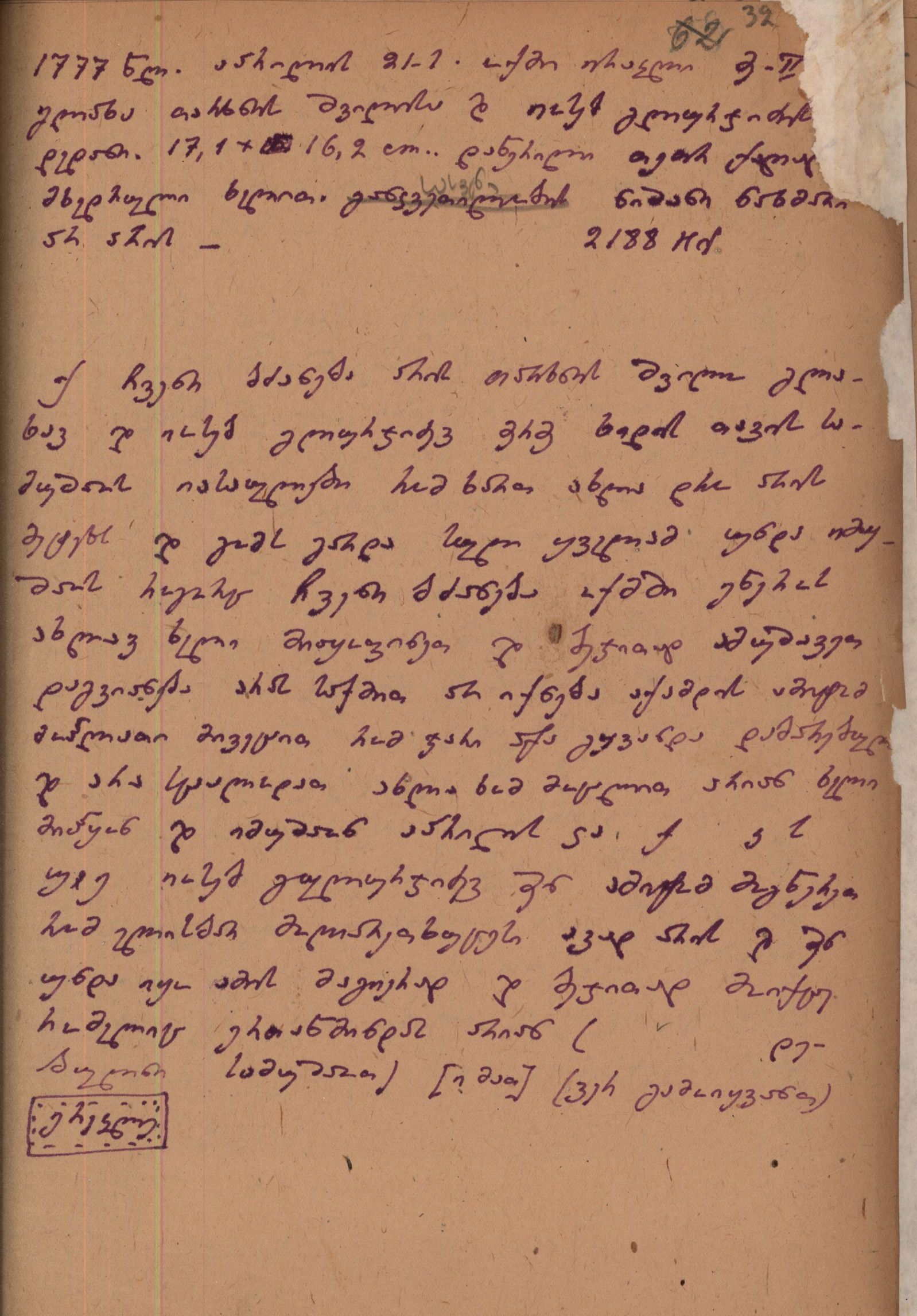 2. საბუთი გადაწერილია გიორგი ბოჭორიძის მიერ 1930-1936 წწ.-ში.
