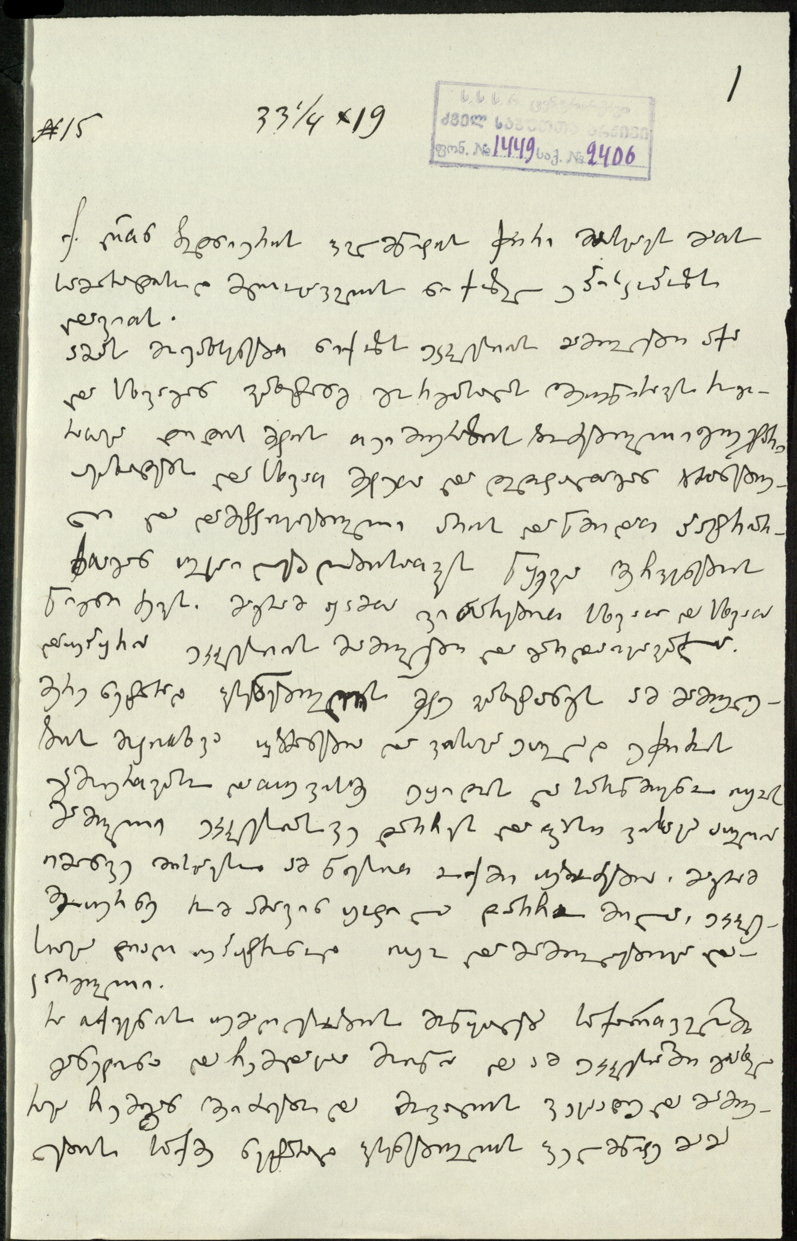 2. სარგის კაკაბაძეს მითითებული აქვს საბუთის დედნის ზომა: 331/4X19 და ძველი საარქივო-სააღრიცხვო ნომერი N15.