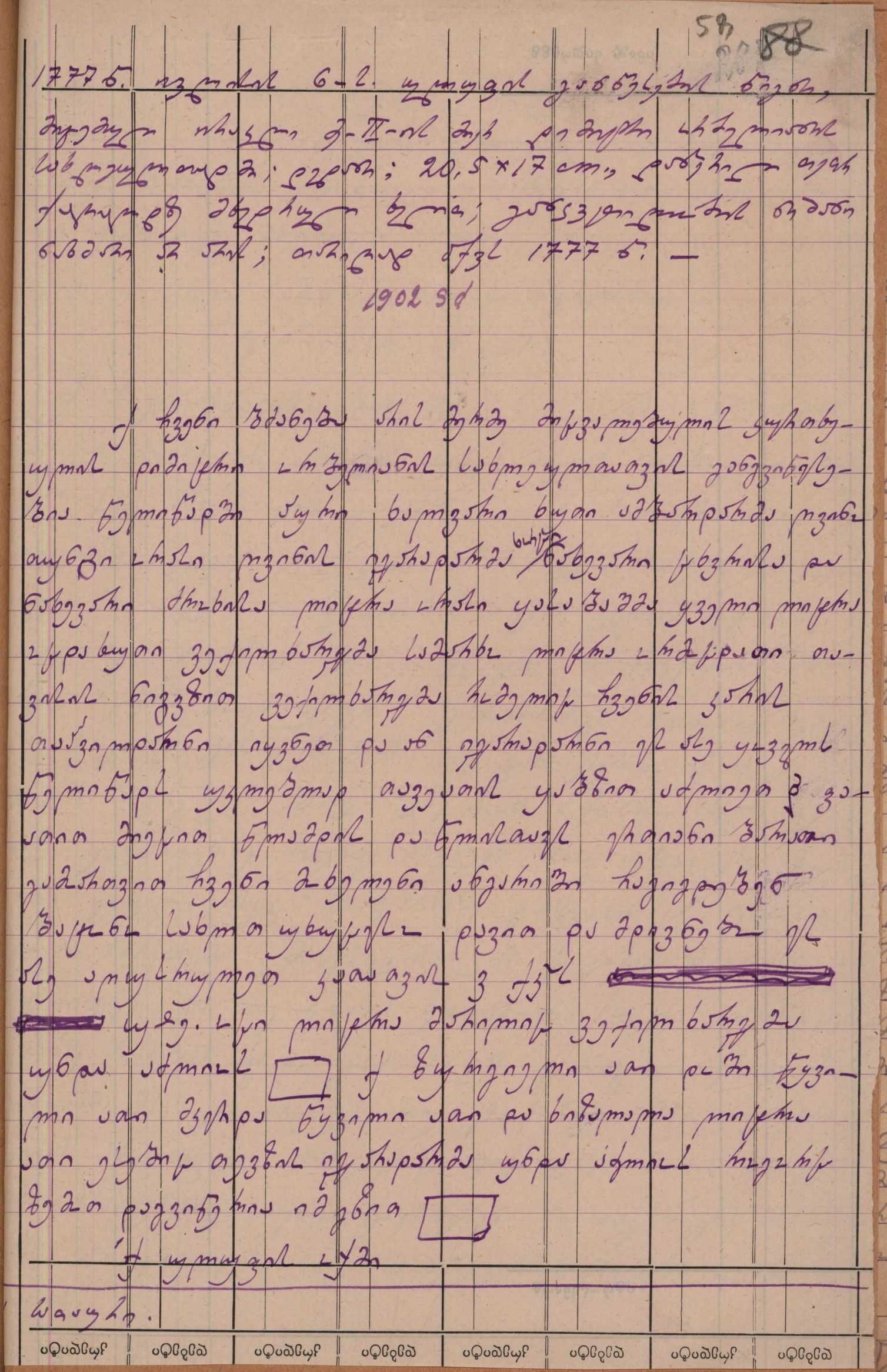 2. დედნის აღწერა გიორგი ბოჭორიძის მიერ: ,,დედანი, 20,5x17 cm..დაწერილი თეთრ ქაღალდზე მხედრული ხელით; განკვეთილობის ნიშანი ნახმარი არ არის", დედანი, ხეც, Sd 1902.