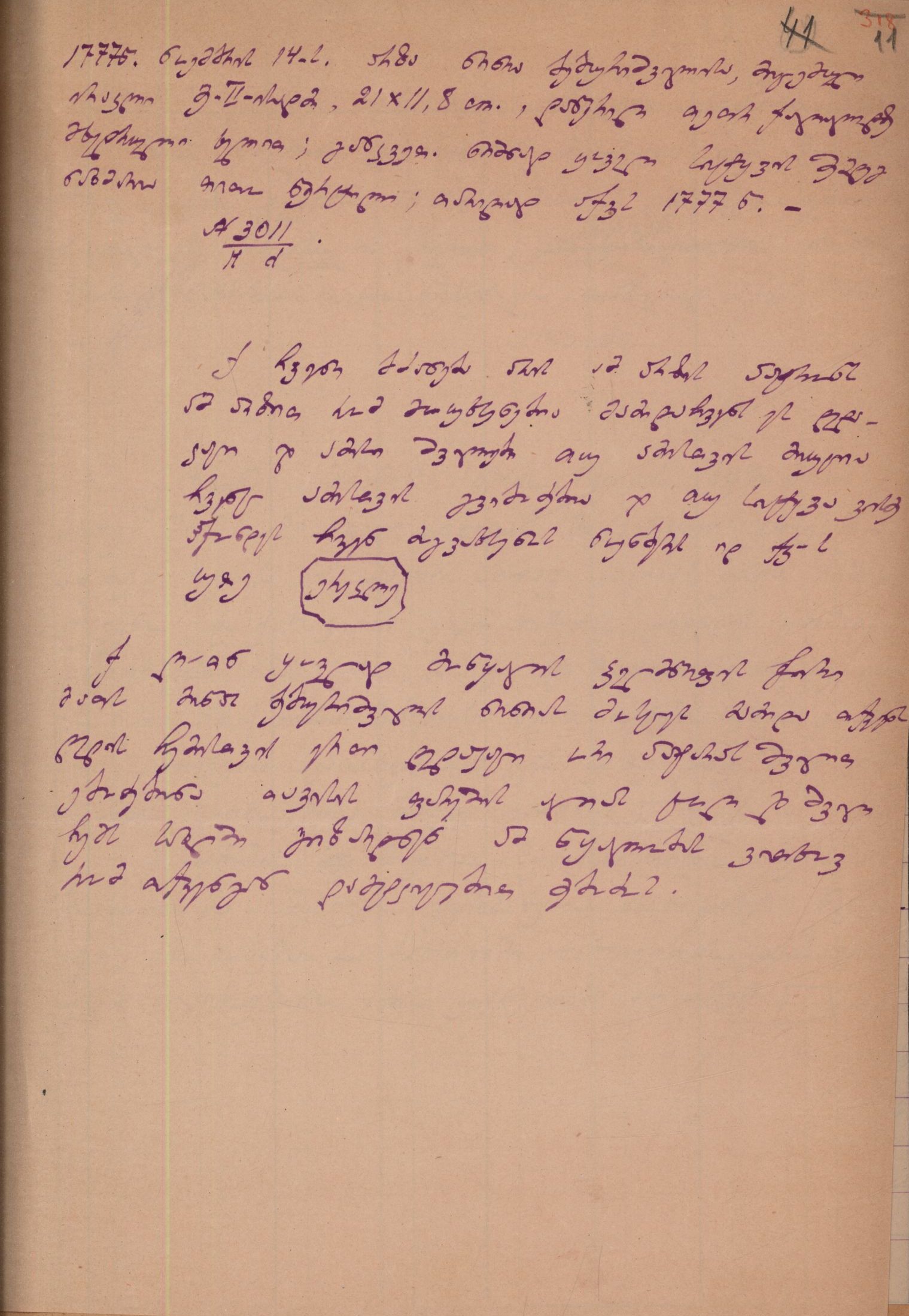 2. დედნის აღწერა გიორგი ბოჭორიძის მიერ: ,,დედანი. 21/11,8.. დაწერილი თეთრ ქაღალდზე მხედრული ხელით; განკვეთილობის ნიშნად ყოველი სიტყვის შემდეგ ნახმარია თითო წერტილი", დედანი, ხეც, Hd 3011.