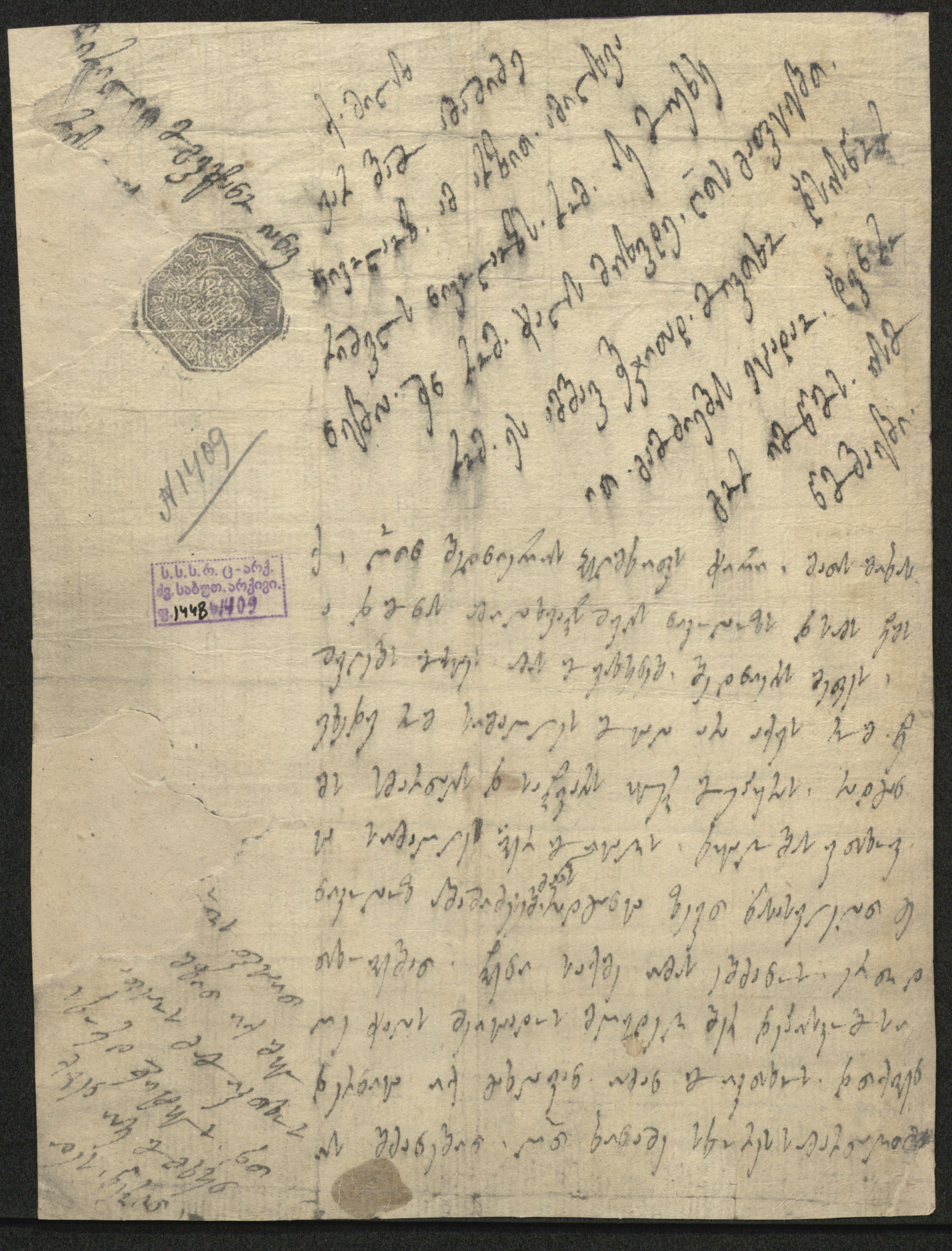 ქაღალდი ყავისფერი, დაწერილი შავი მელნით.