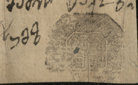 ჭვირნიშნიანი ქაღალდი მოყავისფრო, დაწერილი შავი მელნით.