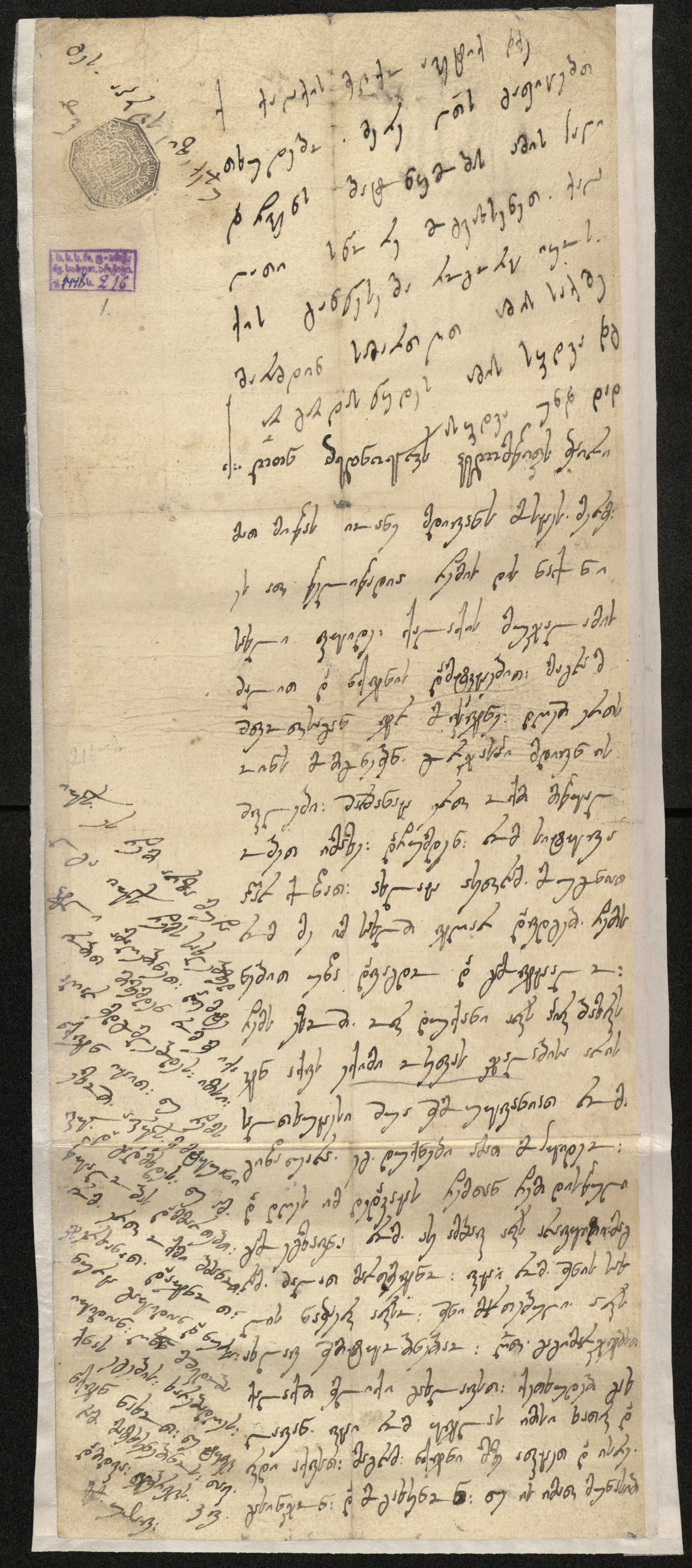 ქაღალდი მოყვითალო, დაწერილი ყავისფერი მელნით