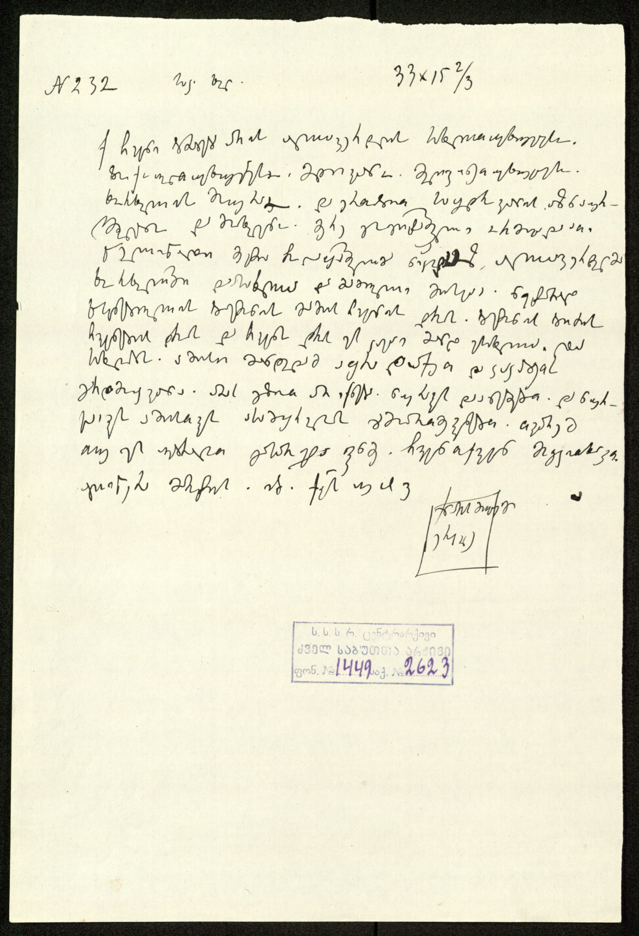 2. სარგის კაკაბაძეს მითითებული აქვს დედნის ზომა: 33X152/3 და ძველი საარქივო-სააღრიცხვო ნომერი N232.