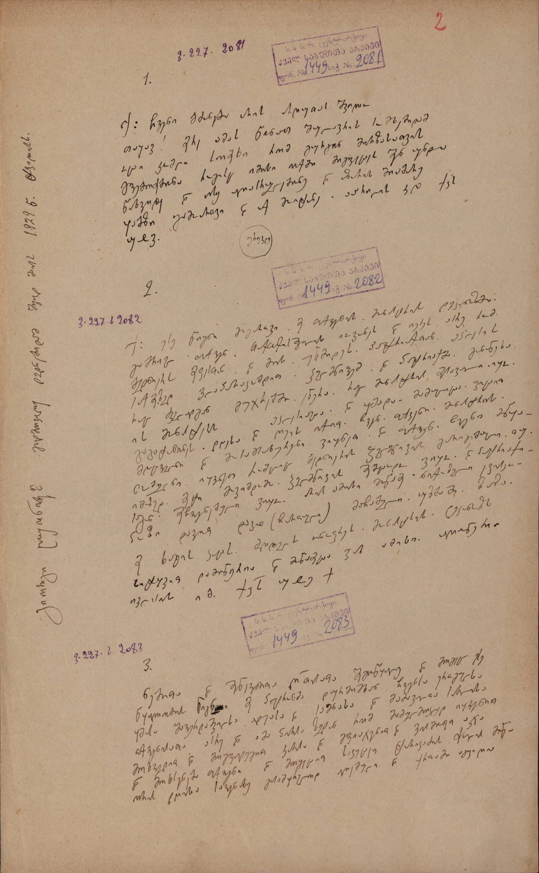 1. მინაწერი გვ.1r-ის მარცხენა აშიაზე: ,, გიორგი ლეონიძემ გადმოვიღე დედნებიდამ შვიდ მაისს 1929 წ. ტფილისს“.
