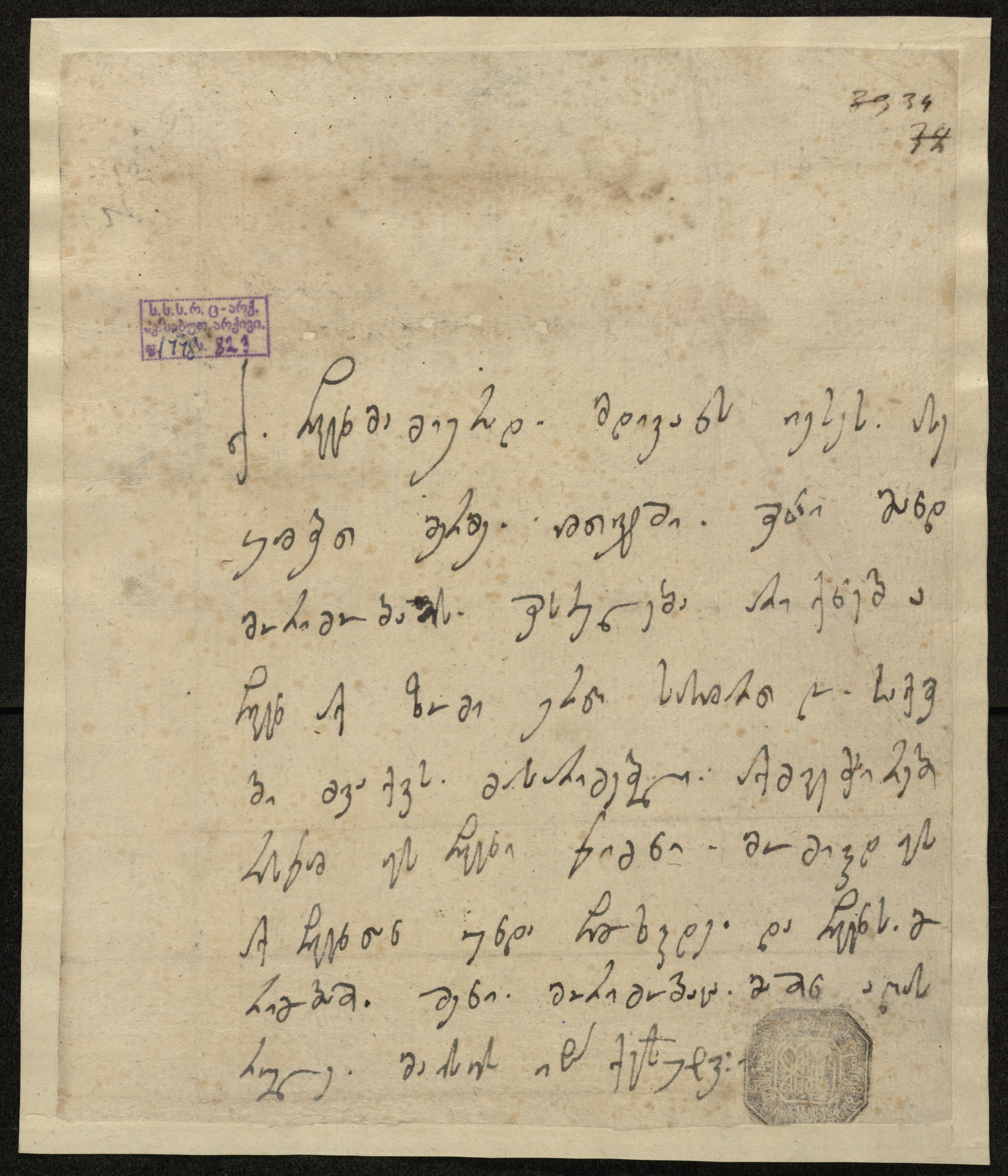 ჭვირნიშნიანი ქაღალდი მოთეთრო, დაწერილი ყავისფერი მელნით