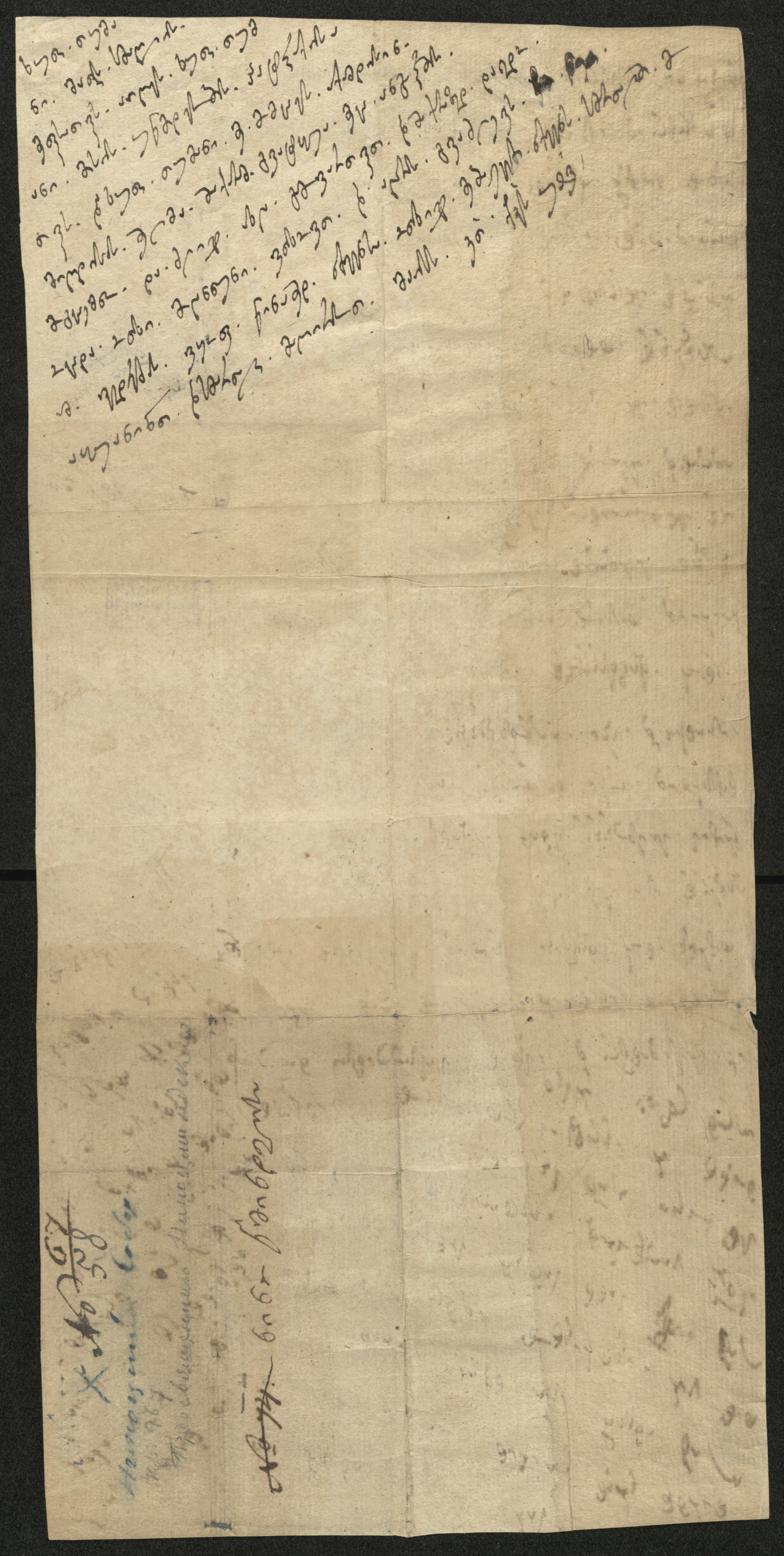 ჭვირნიშნიანი ქაღალდი მოთეთრო, დაწერილი ყავისფერი მელნით