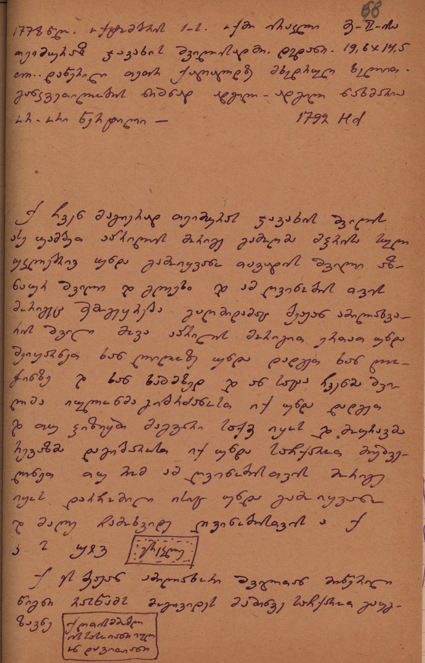 3. მინაწერები: ა.) ,,ქ. ეს ბეჟან ამილახორისშვილთან მიწერილი წიგნი რაწამს მოგივიდეს მაშინვე საჩქაროთ გაუგზავნე; ბეჭედი იულონ ბატონიშვილის".