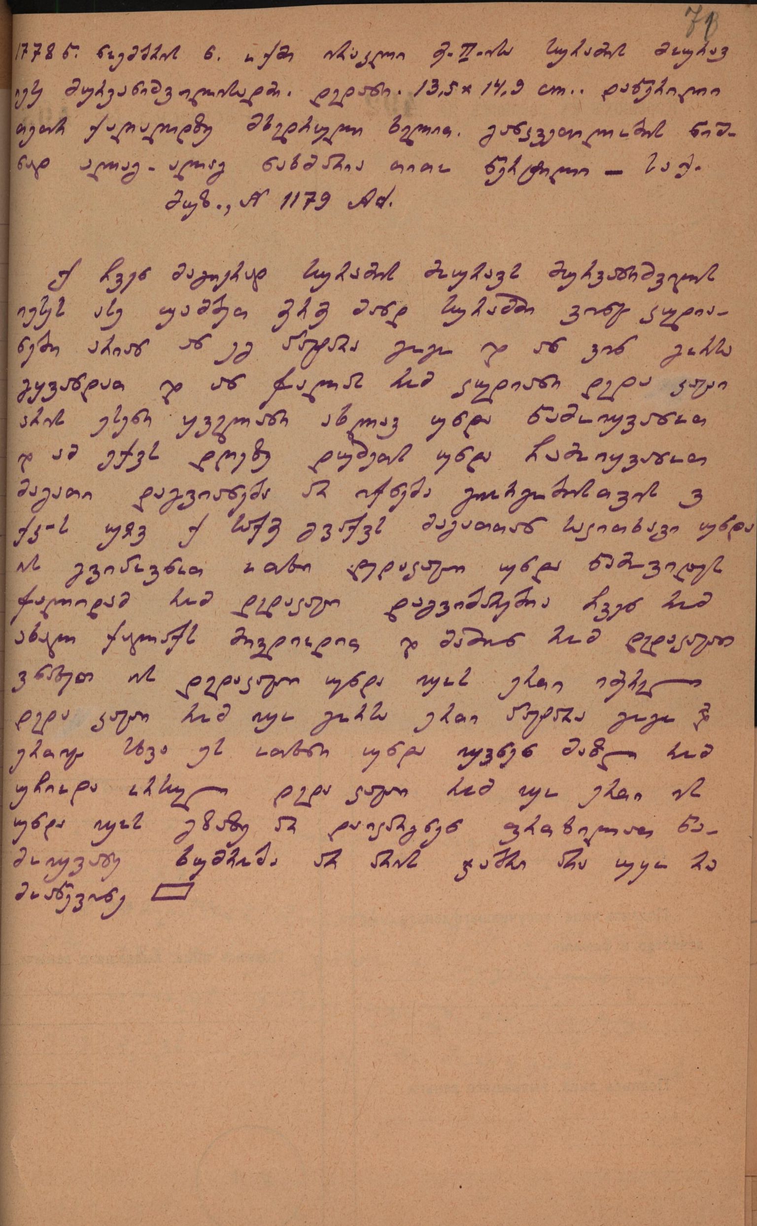 2. დედნის აღწერა გიორგი ბოჭორიძის მიერ: ,, დედანი, 13,5x14,9 cm.. დაწერილი თეთრ ქაღალდზე მხედრული ხელით; განკვეთილობის ნიშნად ალაგ-ალაგ ნახმარია თითო წერტილი"., ხეც, 1179 Ad.
