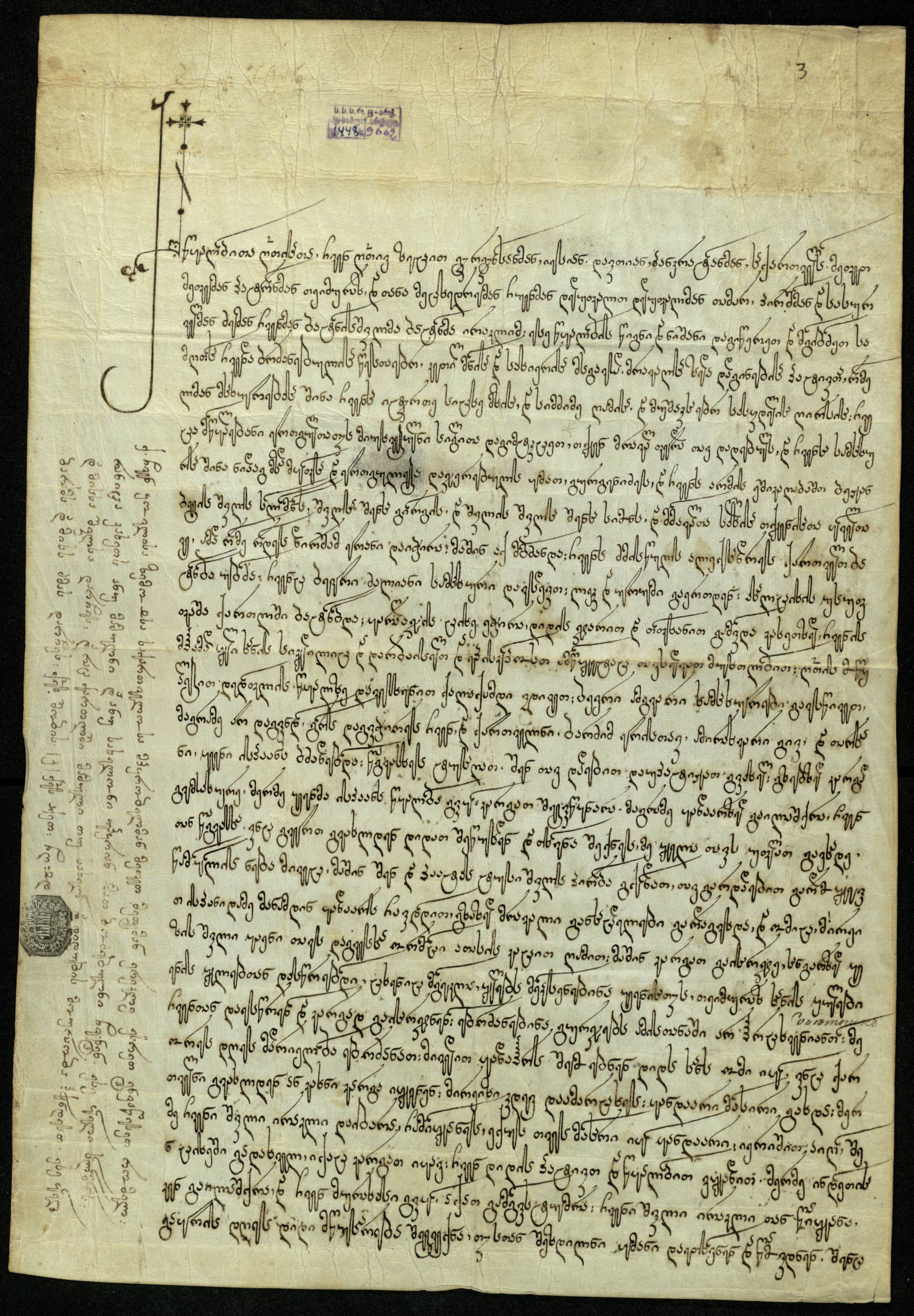 5. შენიშვნა: ახლავს დიდი ზომის ქანწილი ჯვრით და ორნამენტებით, შესრულებული შავი მელნით.