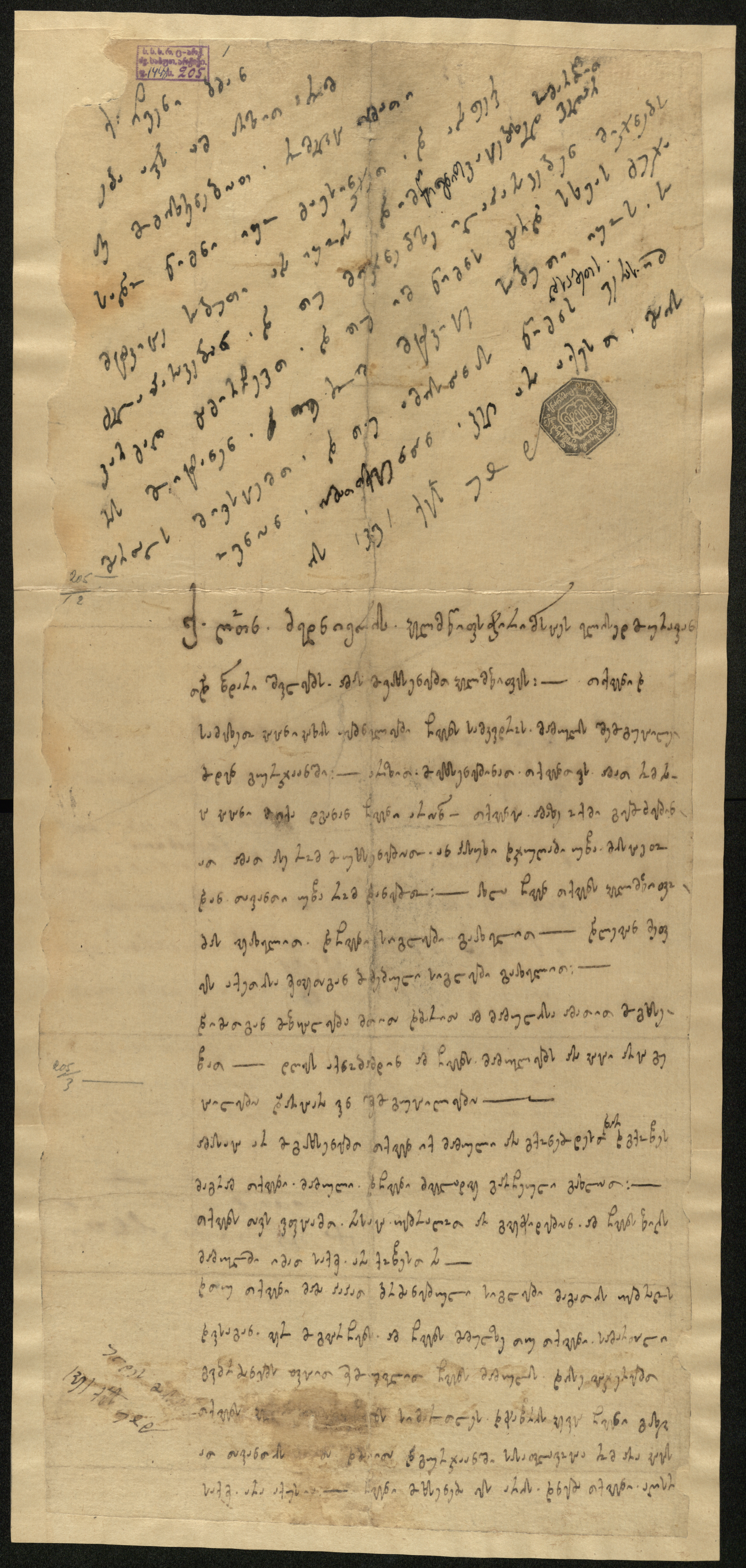 ქაღალდი ღია ყავისფერი, დაწერილი ყავისფერი მელნით.