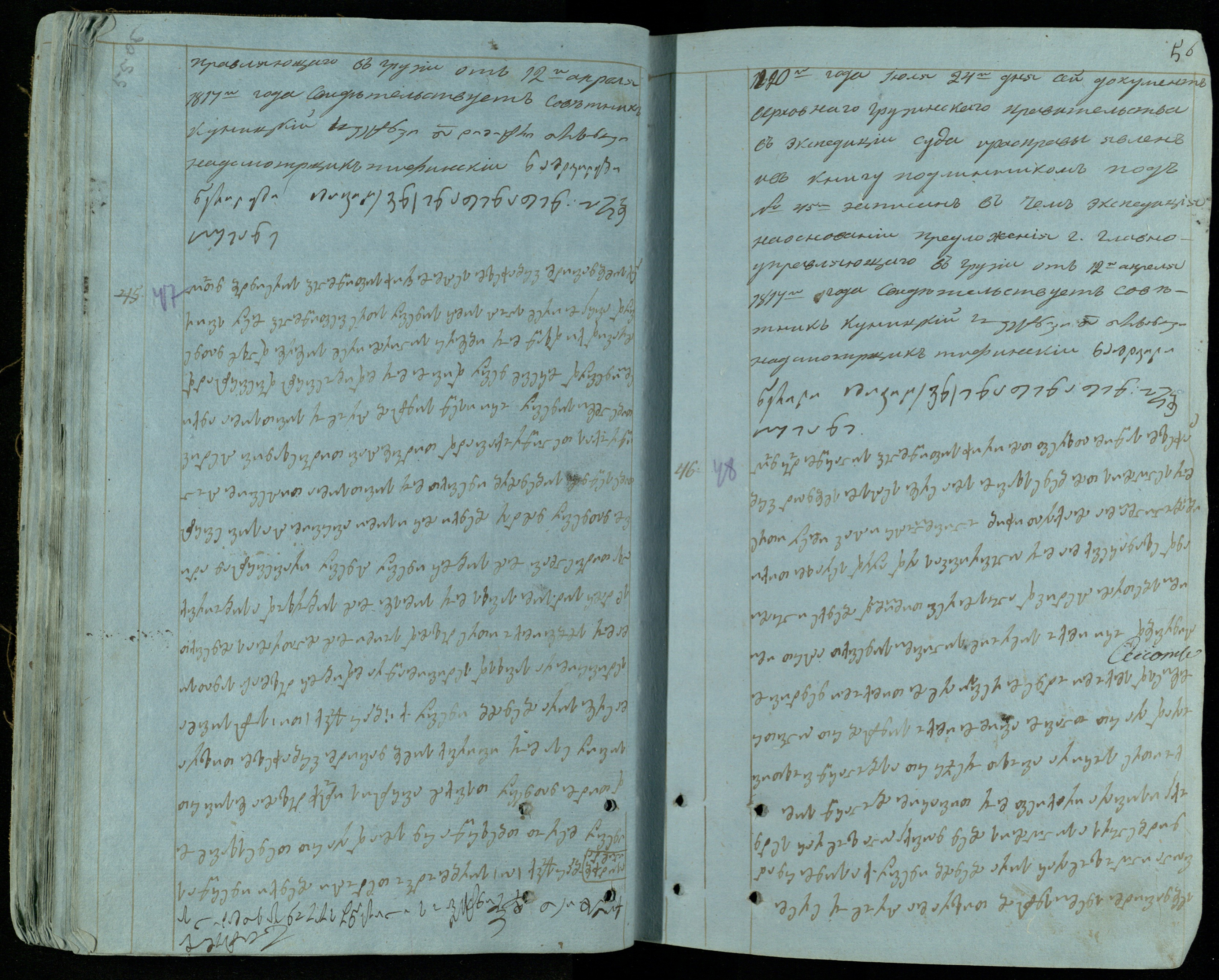 ქაღალდი ცისფერი, დაწერილი შავი მელნით.