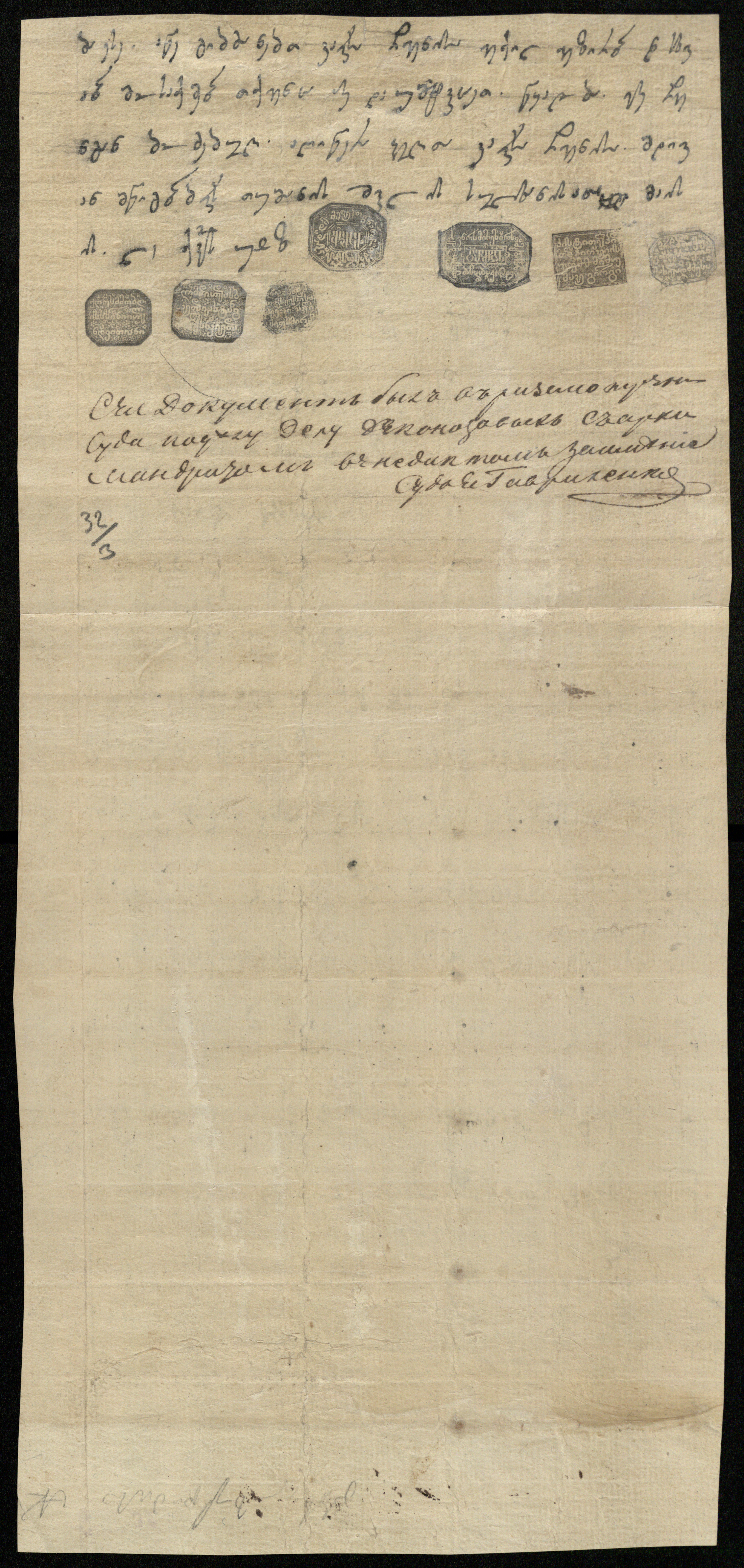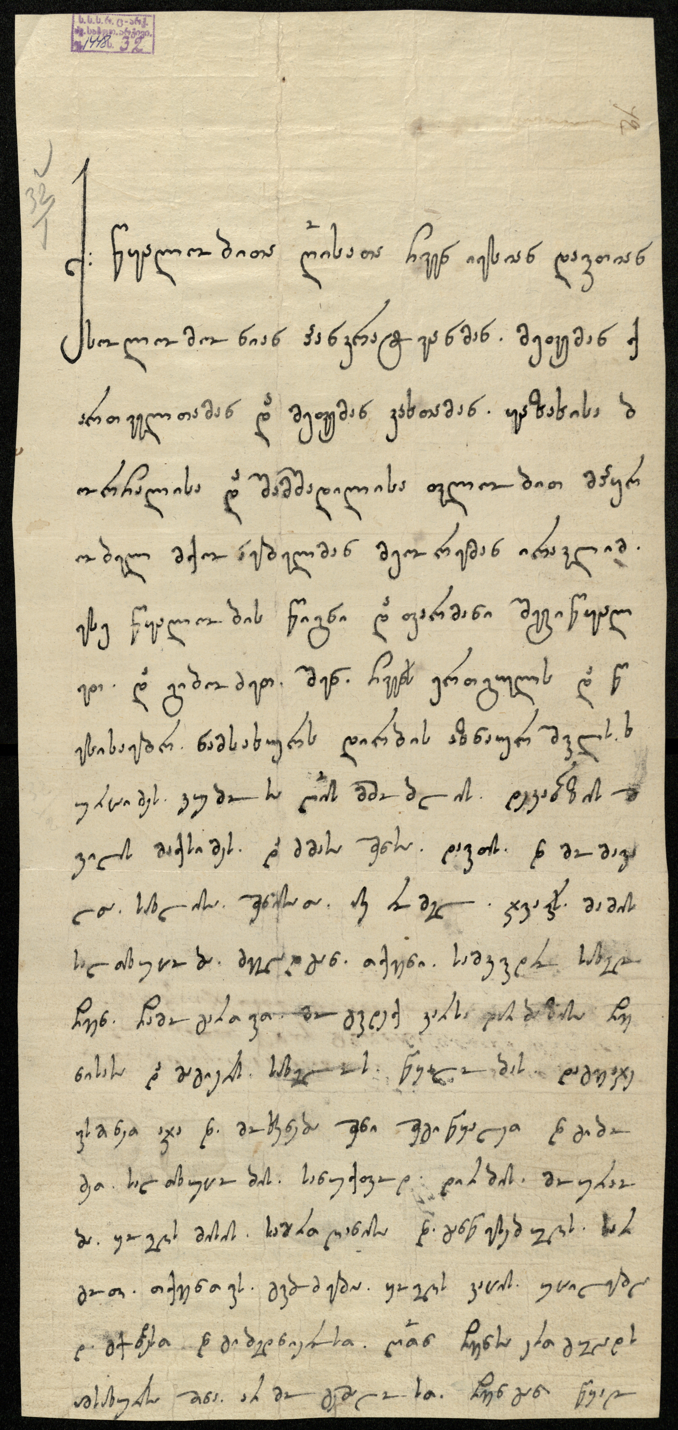 ჭვირნიშნიანი ქაღალდი თეთრი, დაწერილი ყავისფერი და შავი მელნით