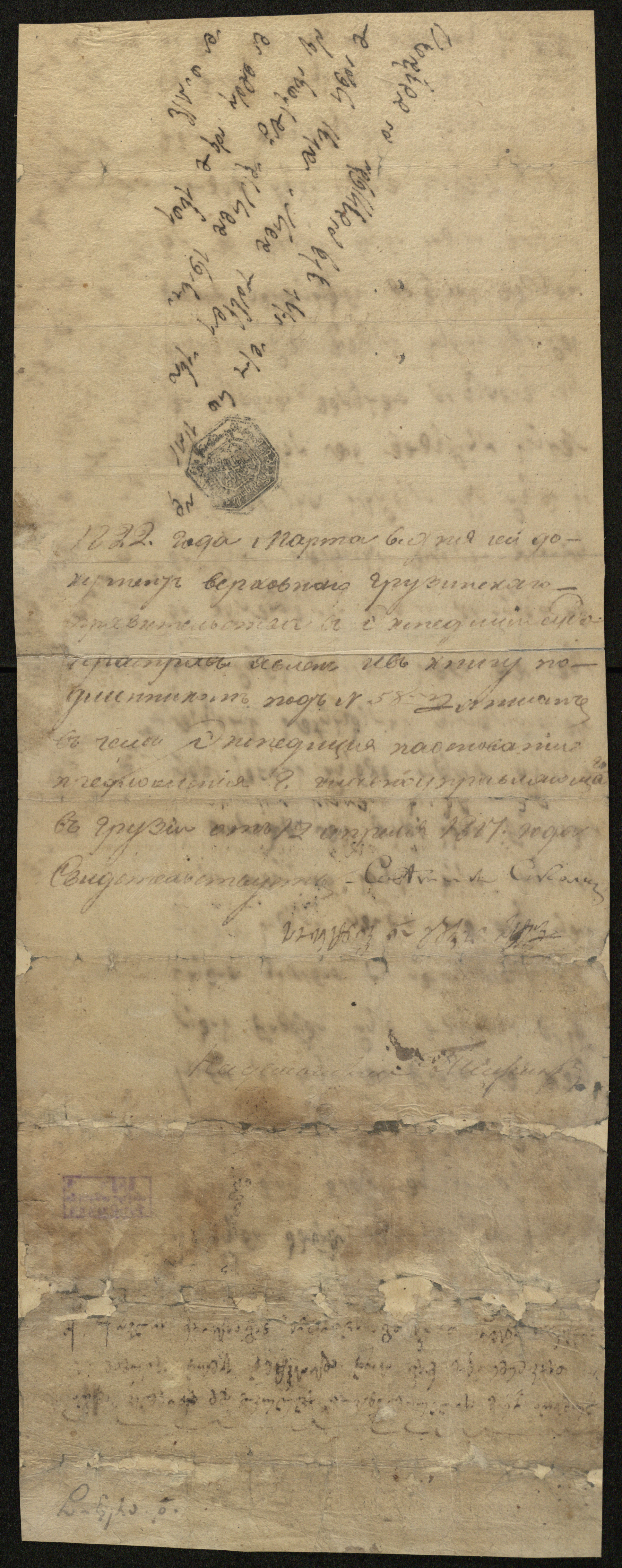 რეგისტრირებულია რუსეთის ადმინისტრაციის მიერ 1822 წ. 6 მარტს, სოვეტნიკი გაბრიელ რატიევი.