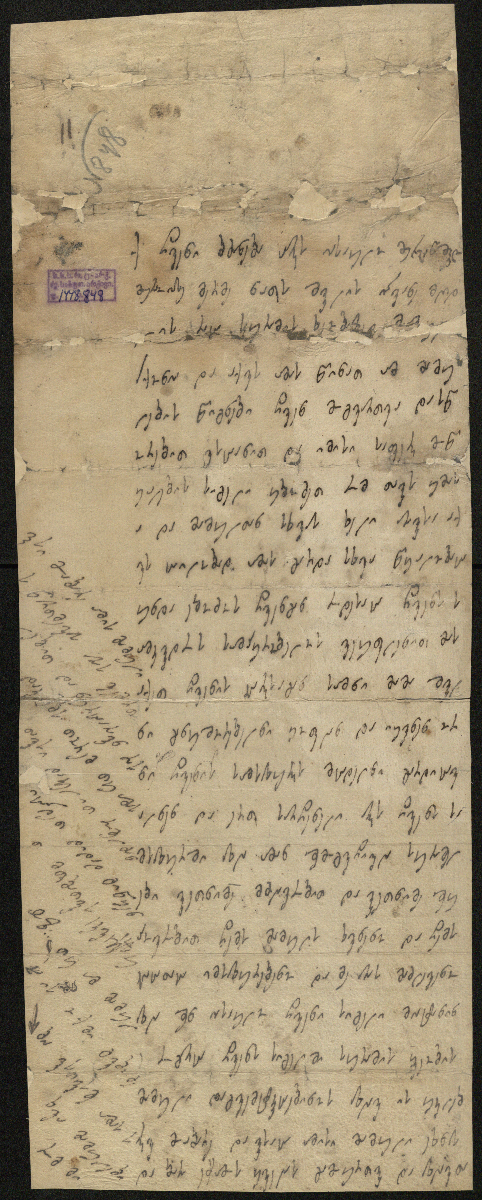 ქაღალდი მოყვითალო, დაწერილი შავი მელნით.